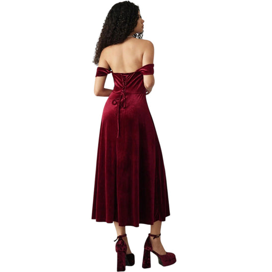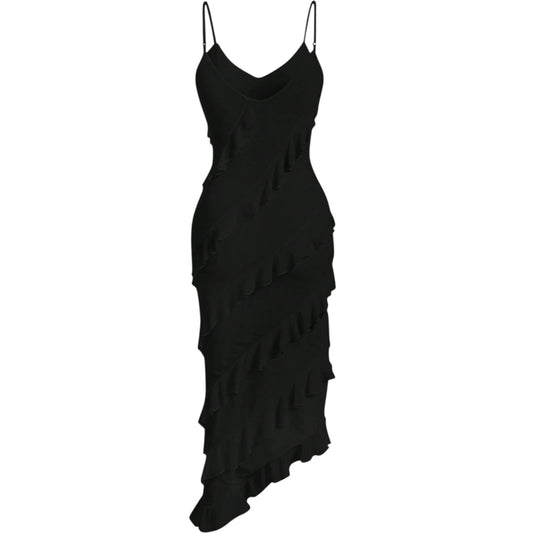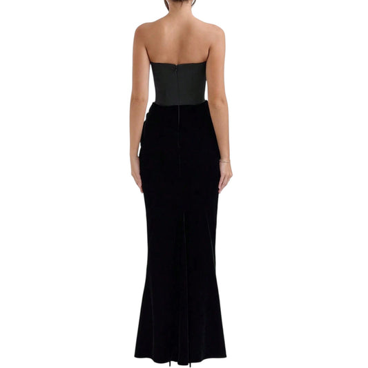 ElfogyottSHE fekete pánt nélküli midi ruha
