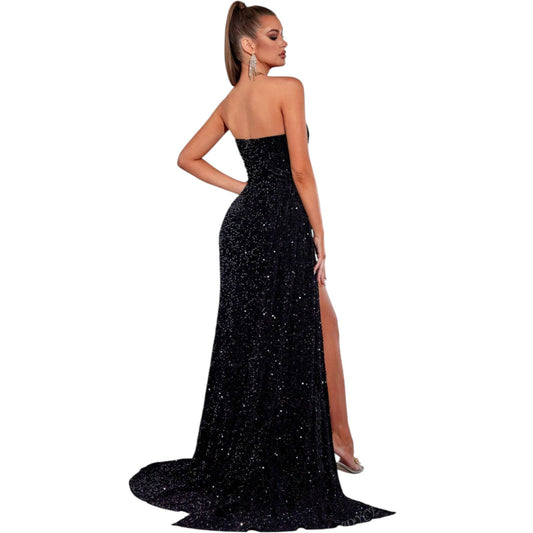 ElfogyottSHE fekete flitteres hasított maxi ruha