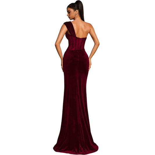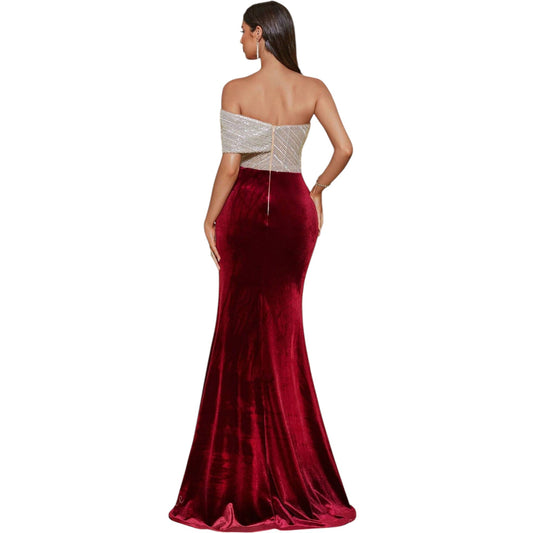 ElfogyottSHE bordó pánt nélküli estélyi ruha