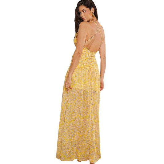 SHE sárga fodros sliccelt maxi ruha