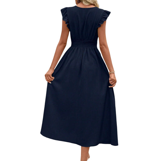 SHE sötétkék fodros midi ruha