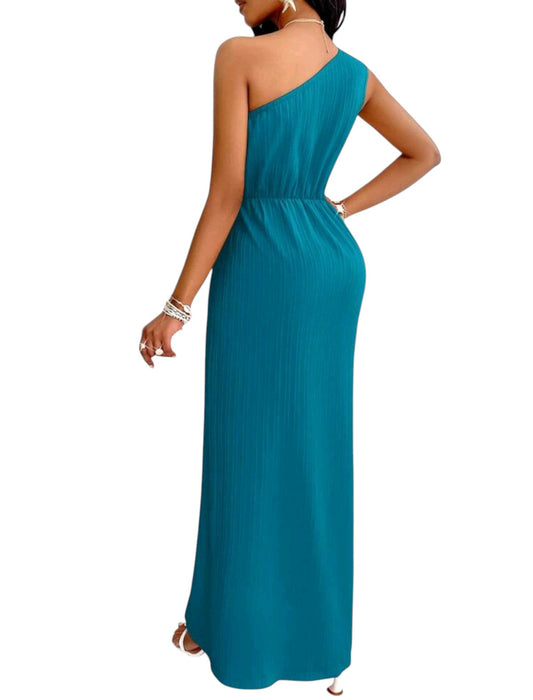 SHE türkizkék félvállas kivágott sliccelt maxi ruha