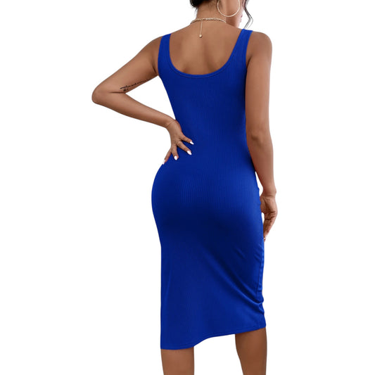 ElfogyottSHE sötétkék V-nyakú hosszú ruha