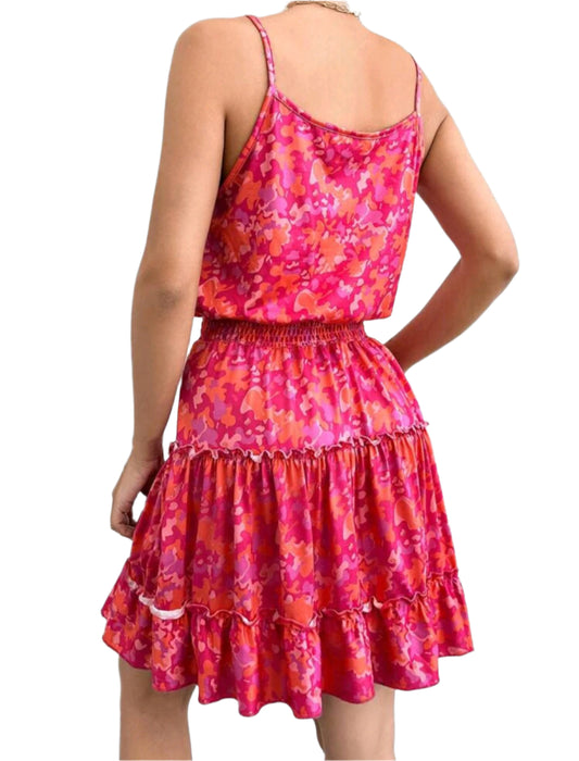 SHE rózsaszín narancsszínű mintás nyári ruha