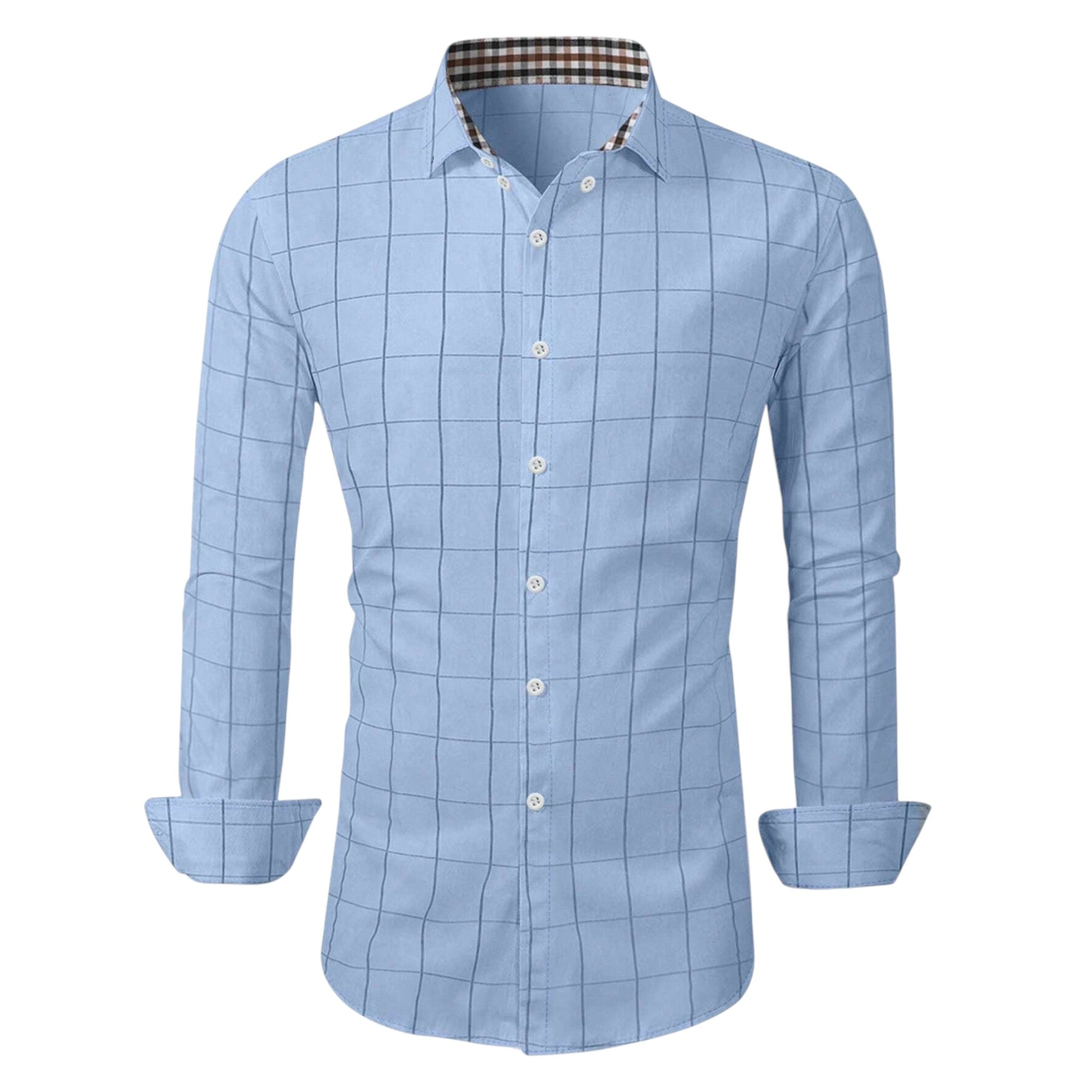 Címke nélküli, világoskék, kockás mintás, hosszú ujjú ing.