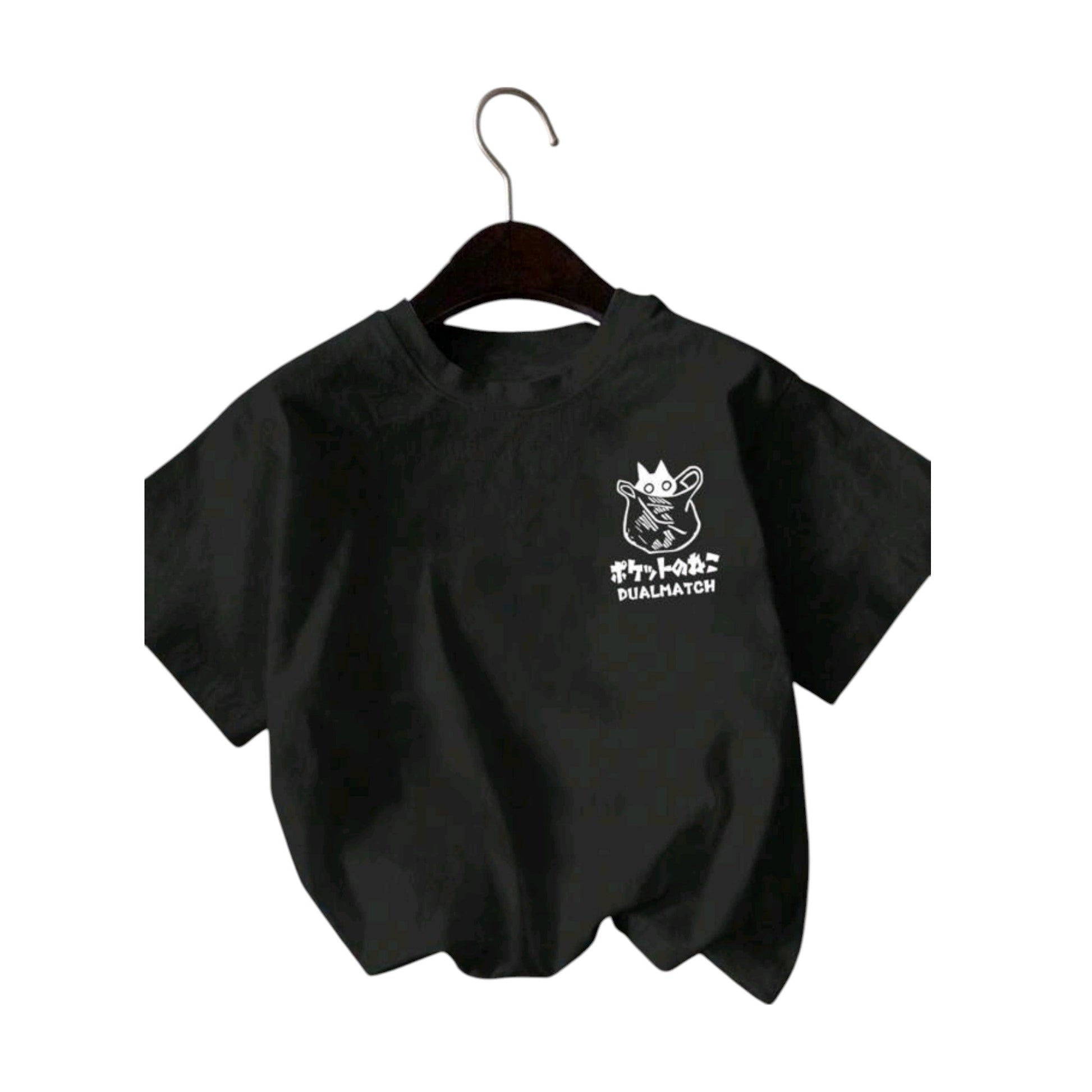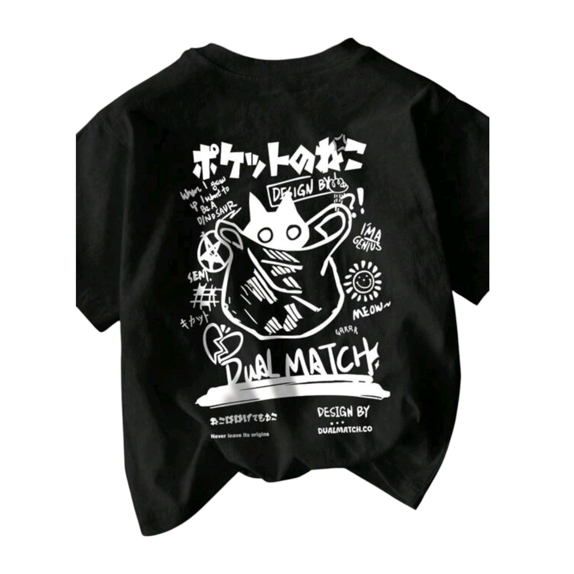 Címke nélküli, fekete, rövid ujjú, elöl kis grafikus mintával