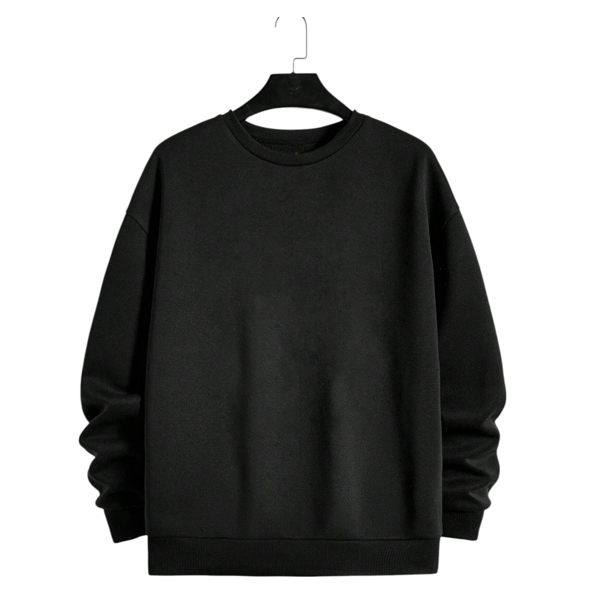 Címke nélküli, fekete, hosszú ujjú, kerek nyakú, bő szabású.