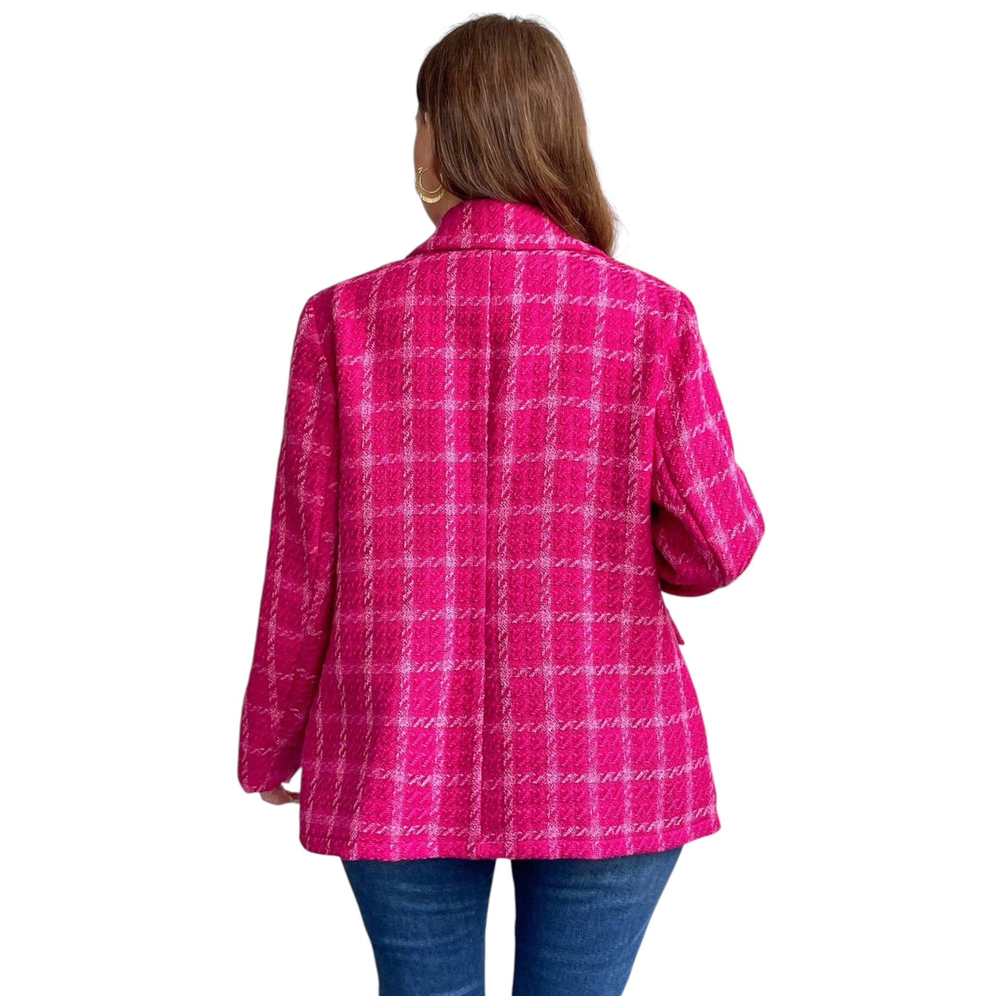 Címke nélküli, rózsaszín, kockás mintás blézer.