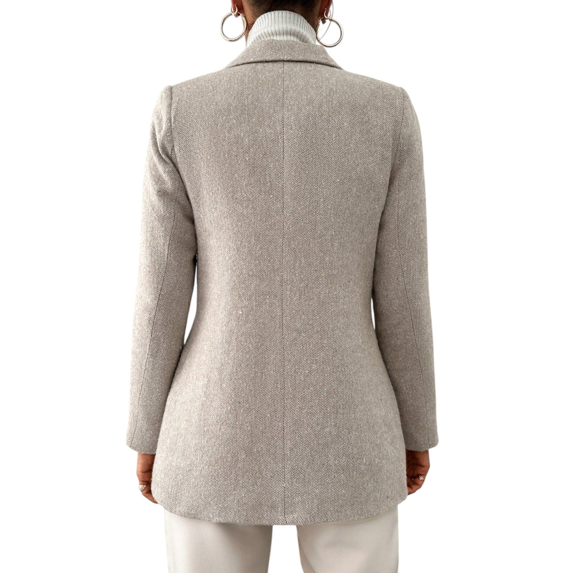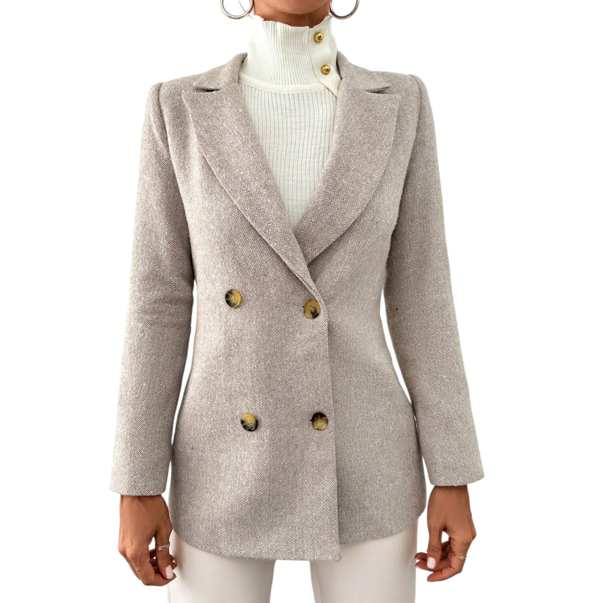 Címke nélküli, bézs, strukturált, hosszú ujjú, dupla gombolású blézer
