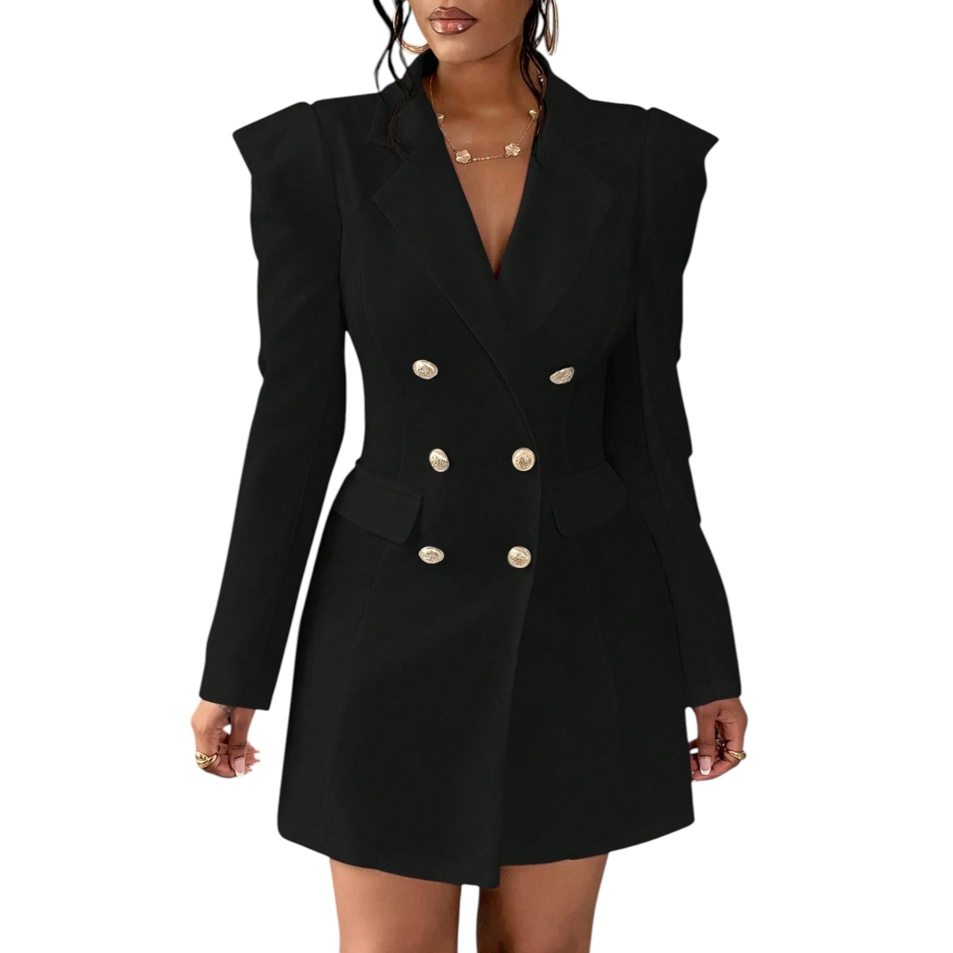 Címke nélküli, fekete, hosszú ujjú, V-nyakú, dupla gombsoros, válltöméses, zsebes.