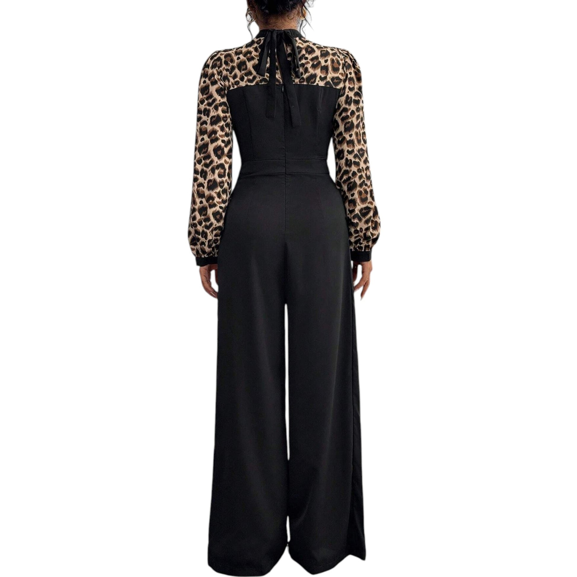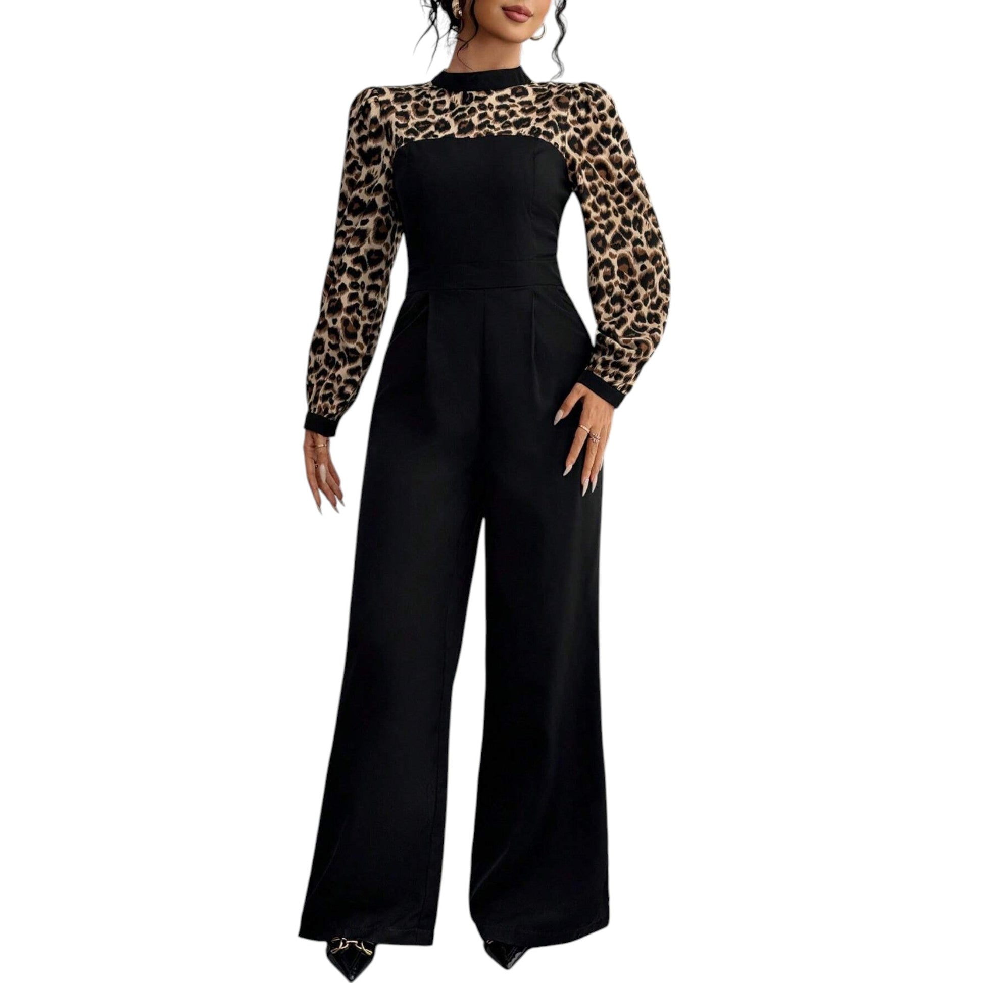 SHE fekete leopárdmintás hosszú ujjú jumpsuit