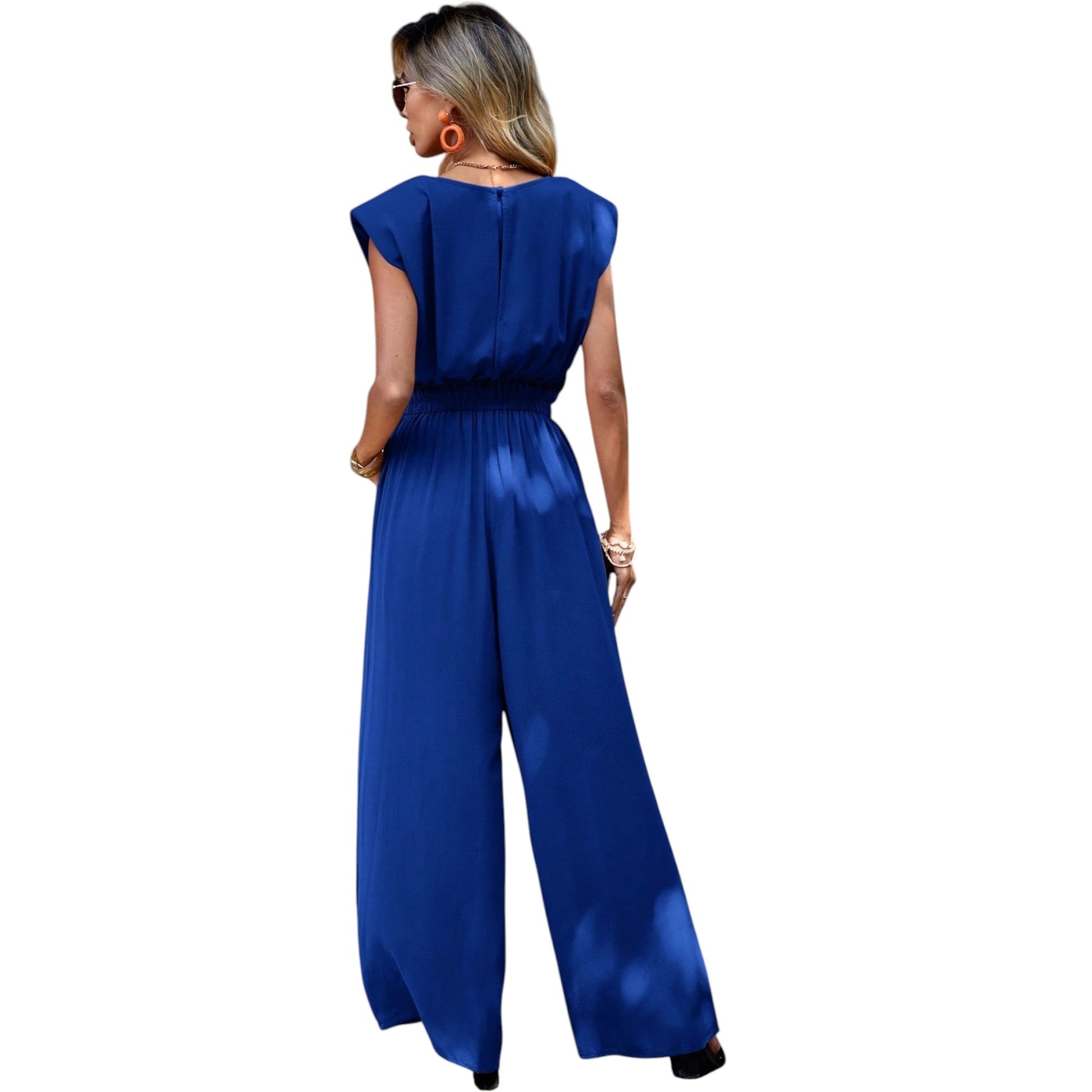 SHE kék ujjatlan redőzött bő szárú kezeslábas