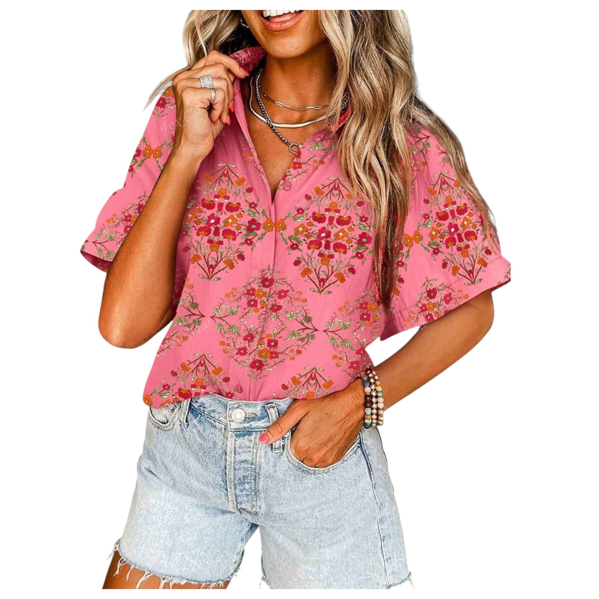 SHE rózsaszín virágos rövid ujjú ing
