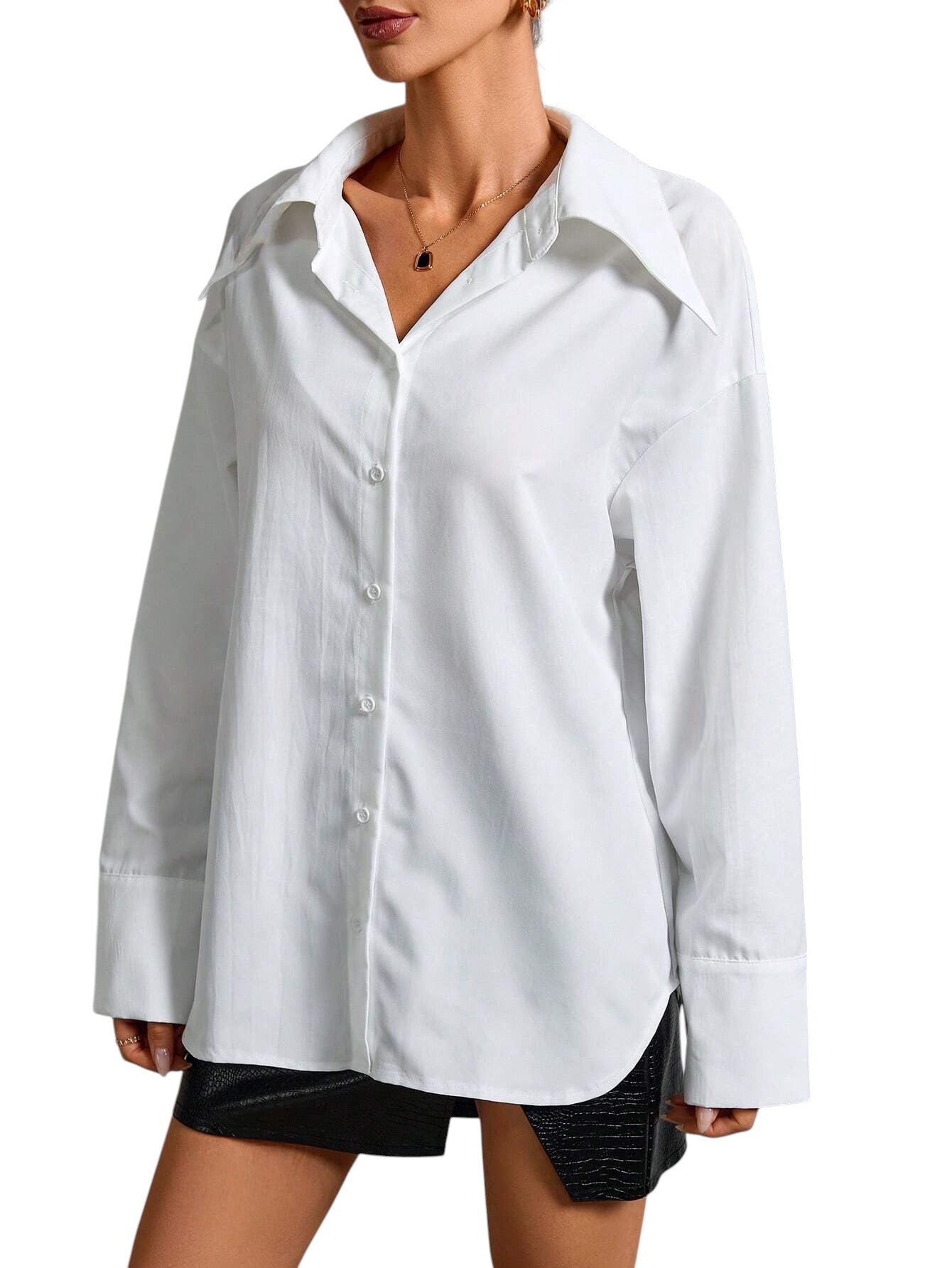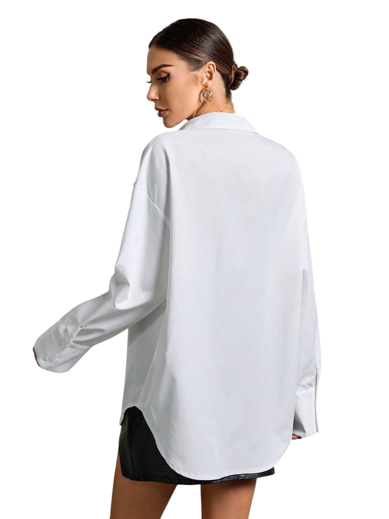 Címke nélküli, fehér, galléros, hosszú ujjú, gombos ingblúz