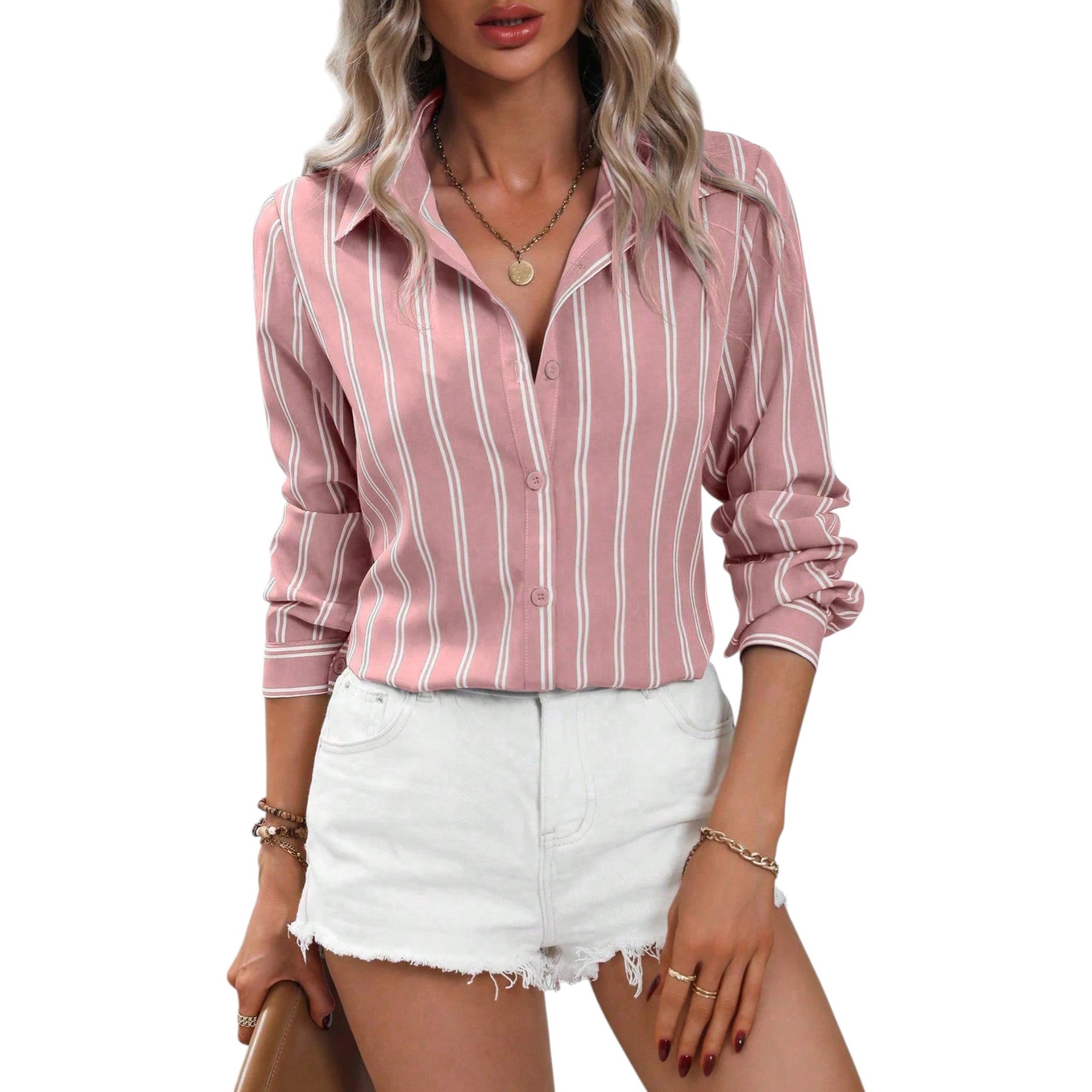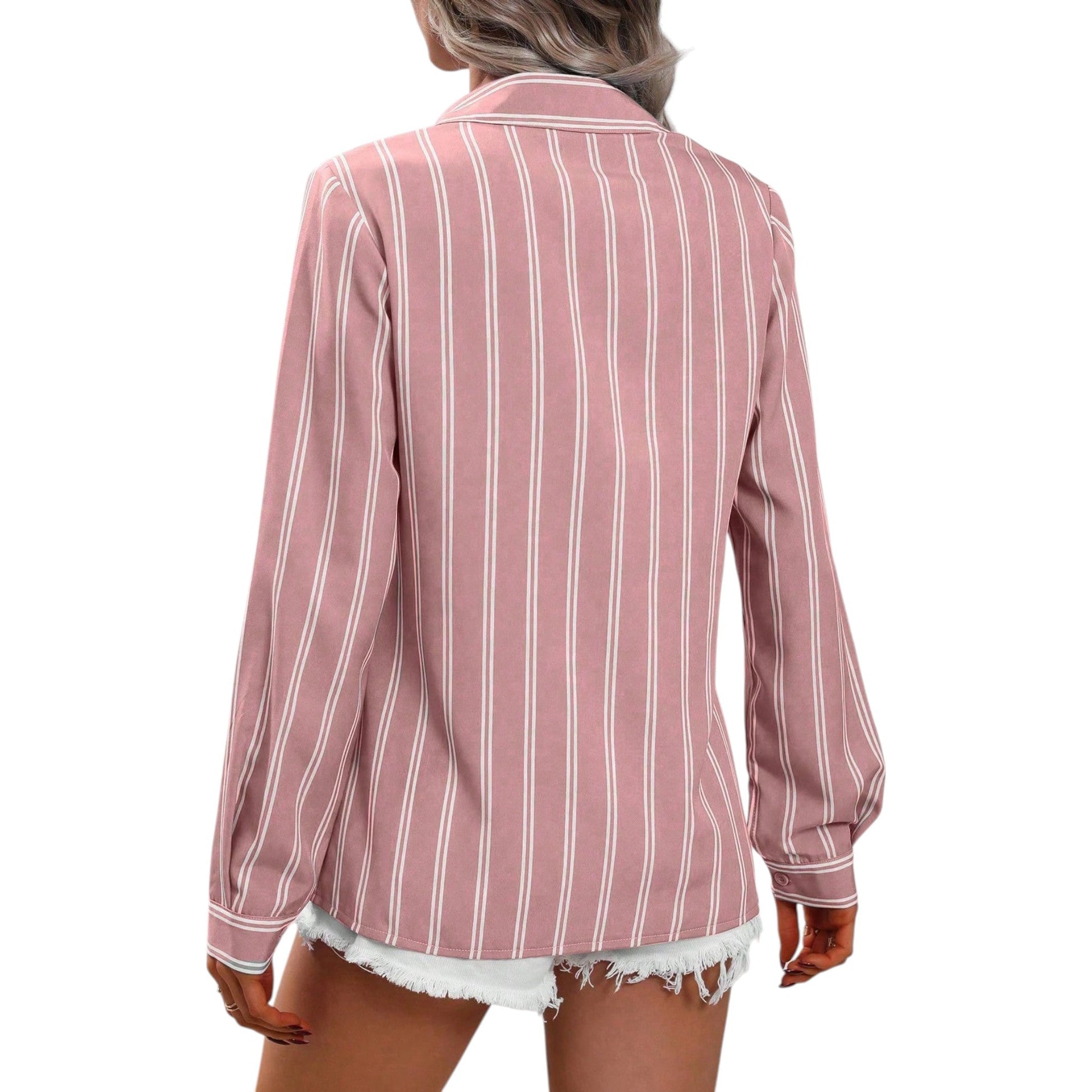 Címke nélküli, rózsaszín, fehér csíkos, hosszú ujjú, gombos ingblúz.