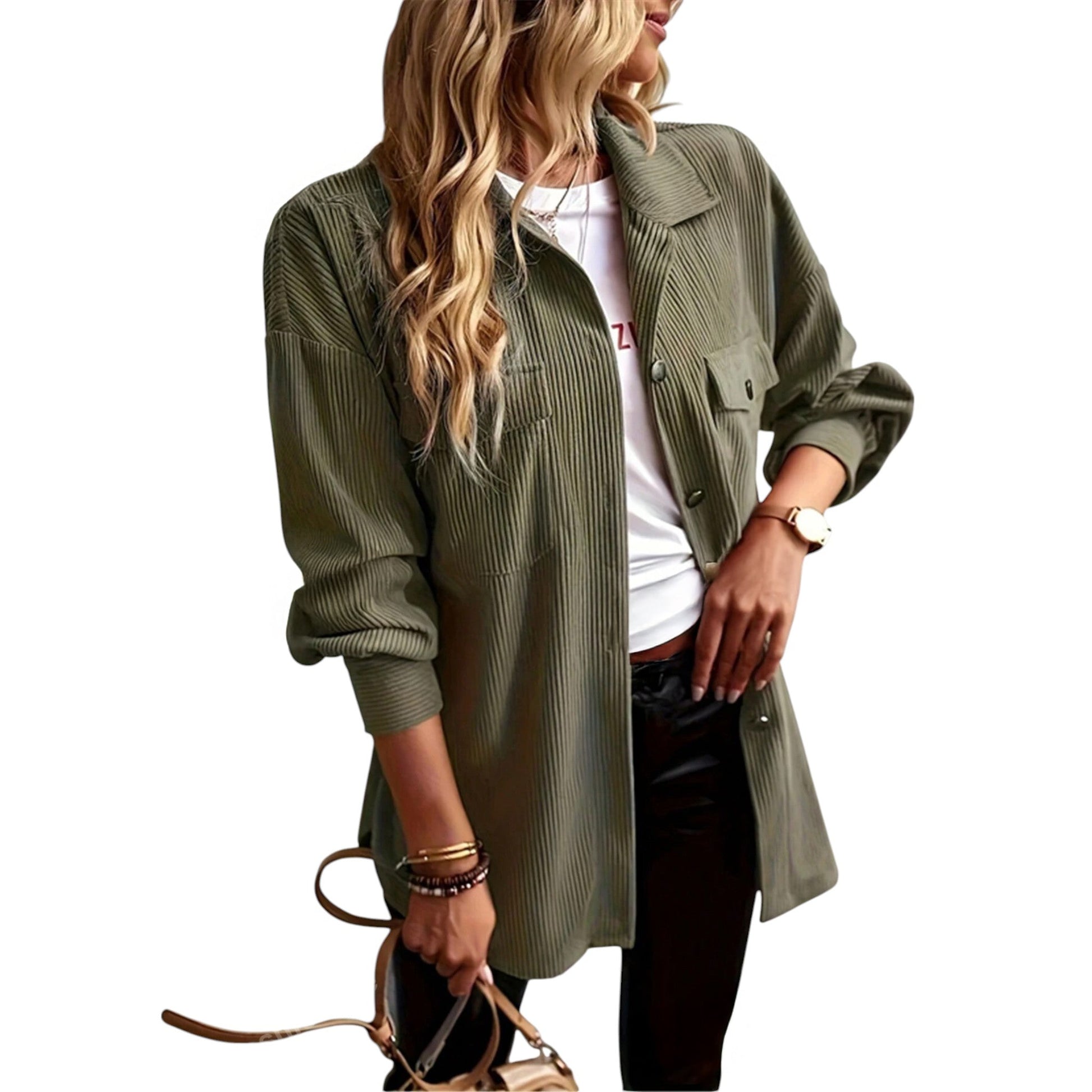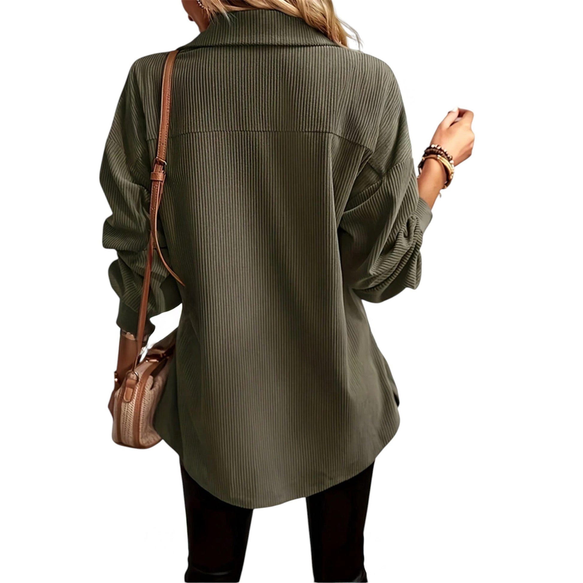 Címke nélküli, zöld, hosszú ujjú, bordás anyagú, gombos záródású, mellzsebekkel.