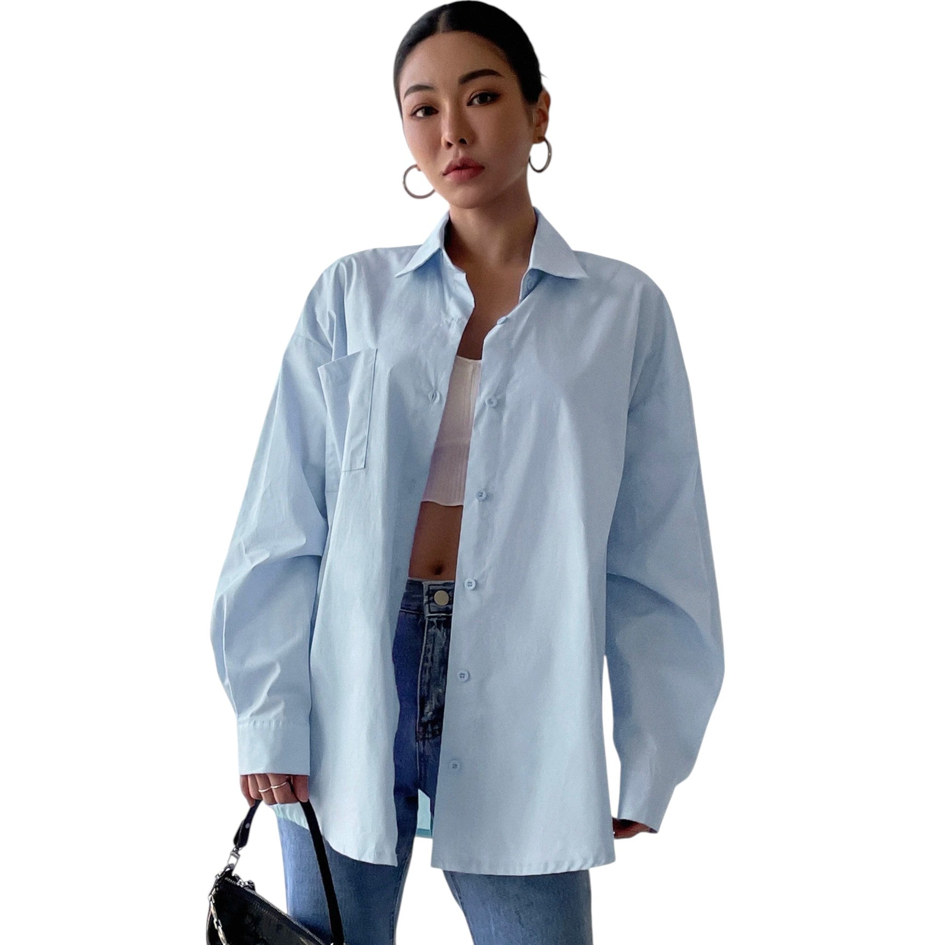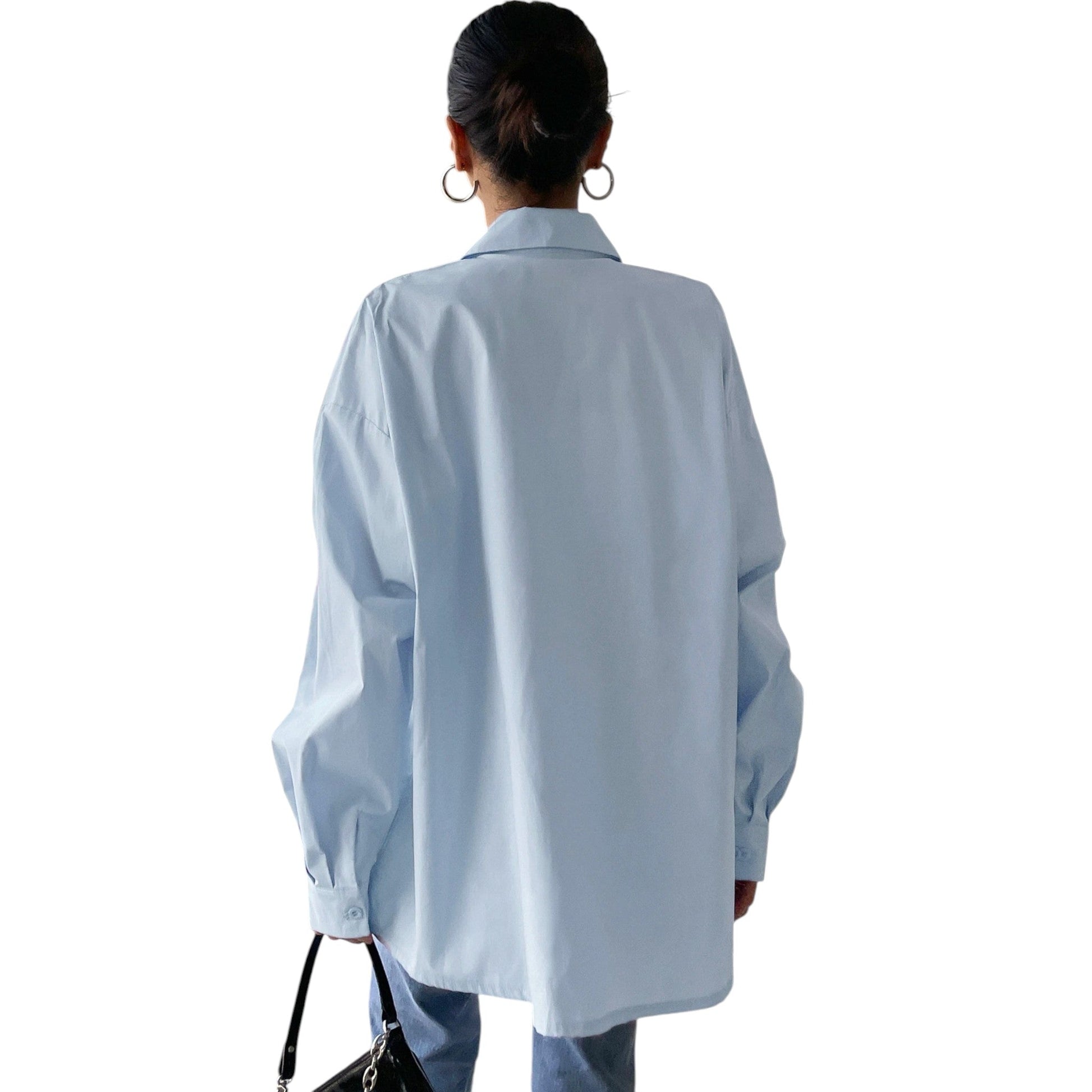 Címke nélküli, világoskék, hosszú ujjú, galléros, gombos, oversize ing.