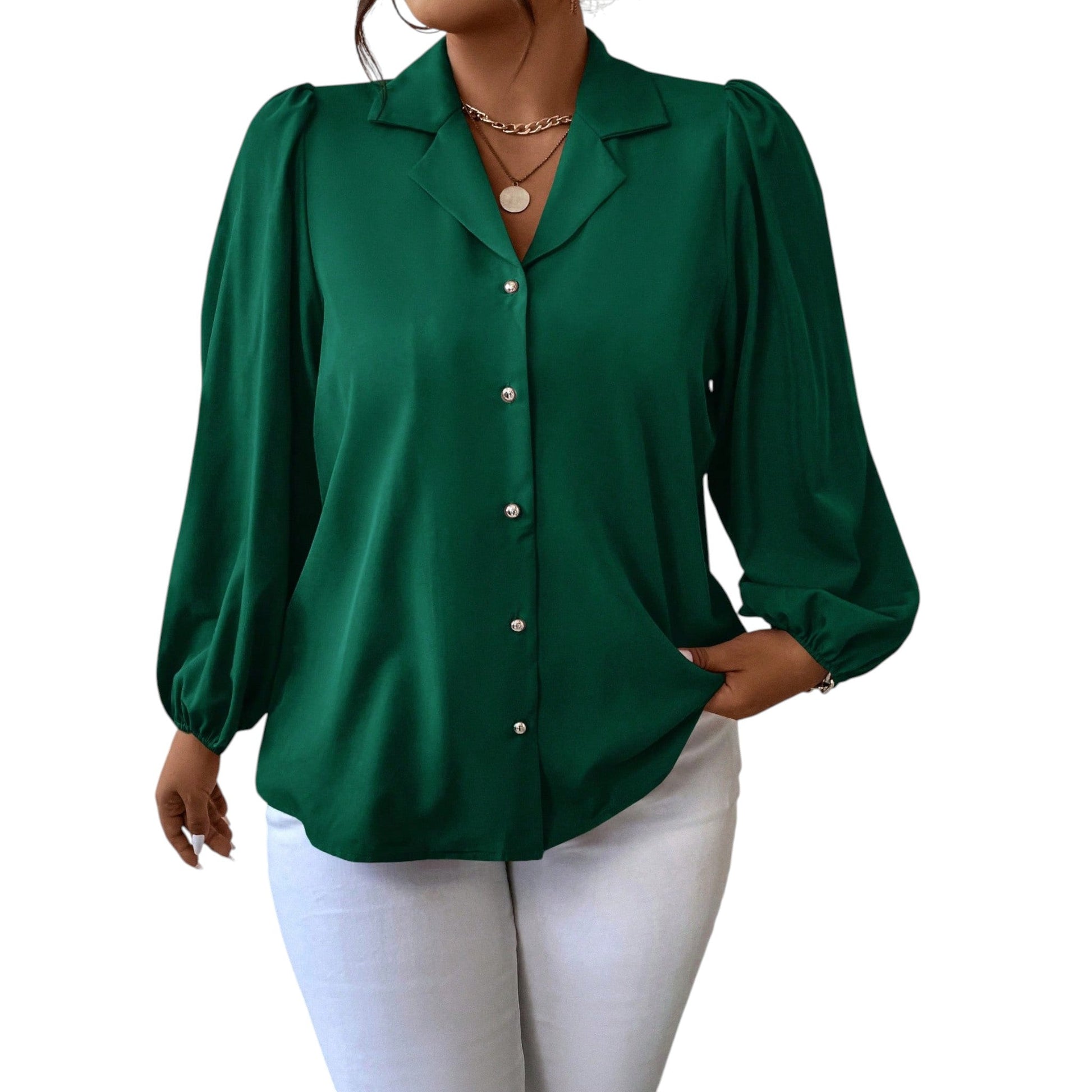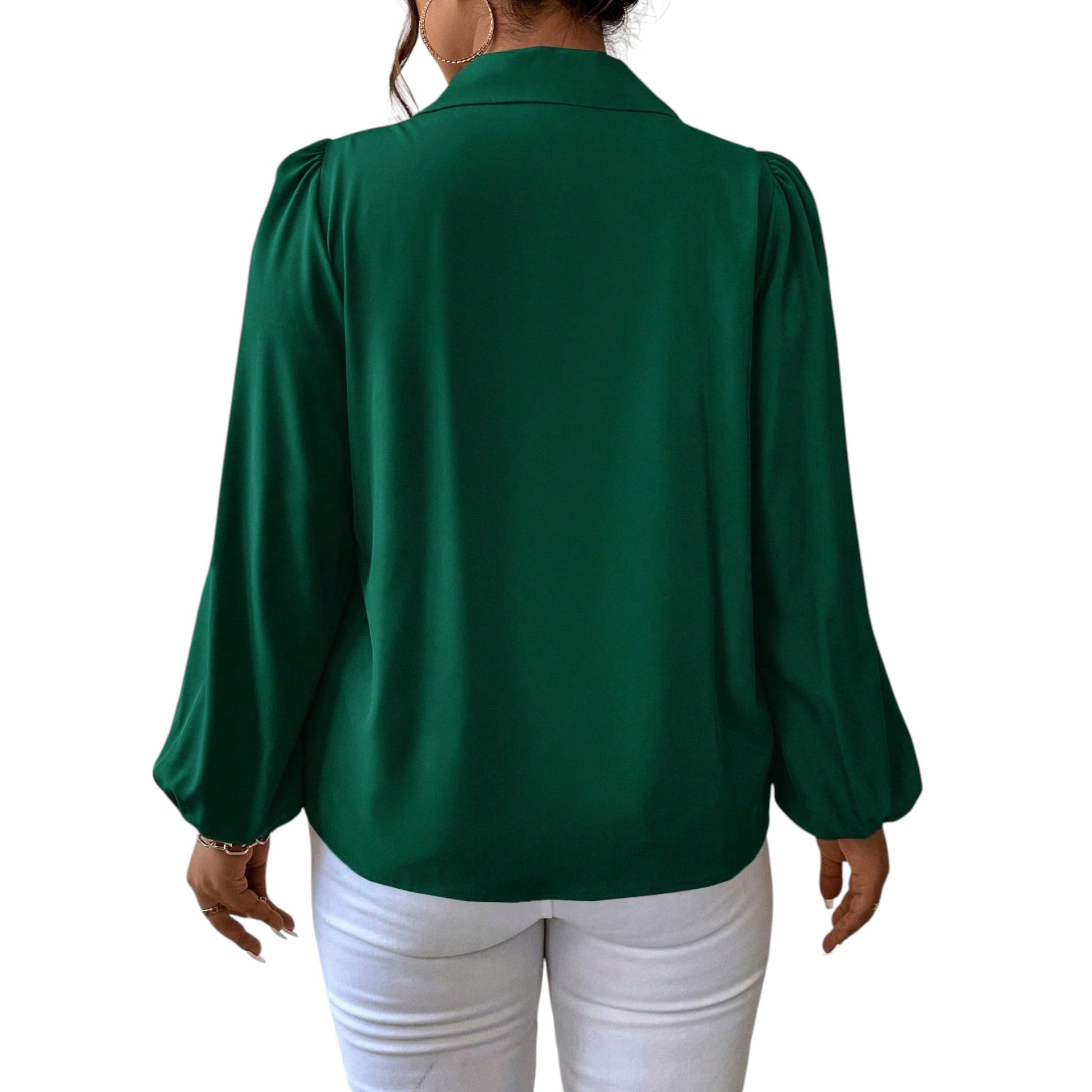 SHE zöld galléros puffos ujjú blúz