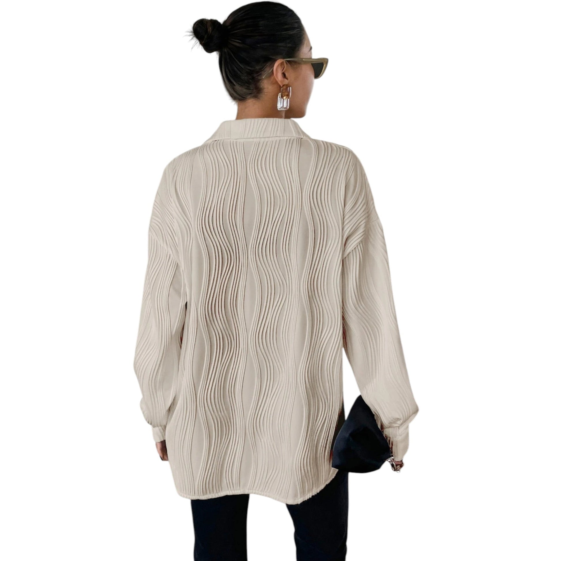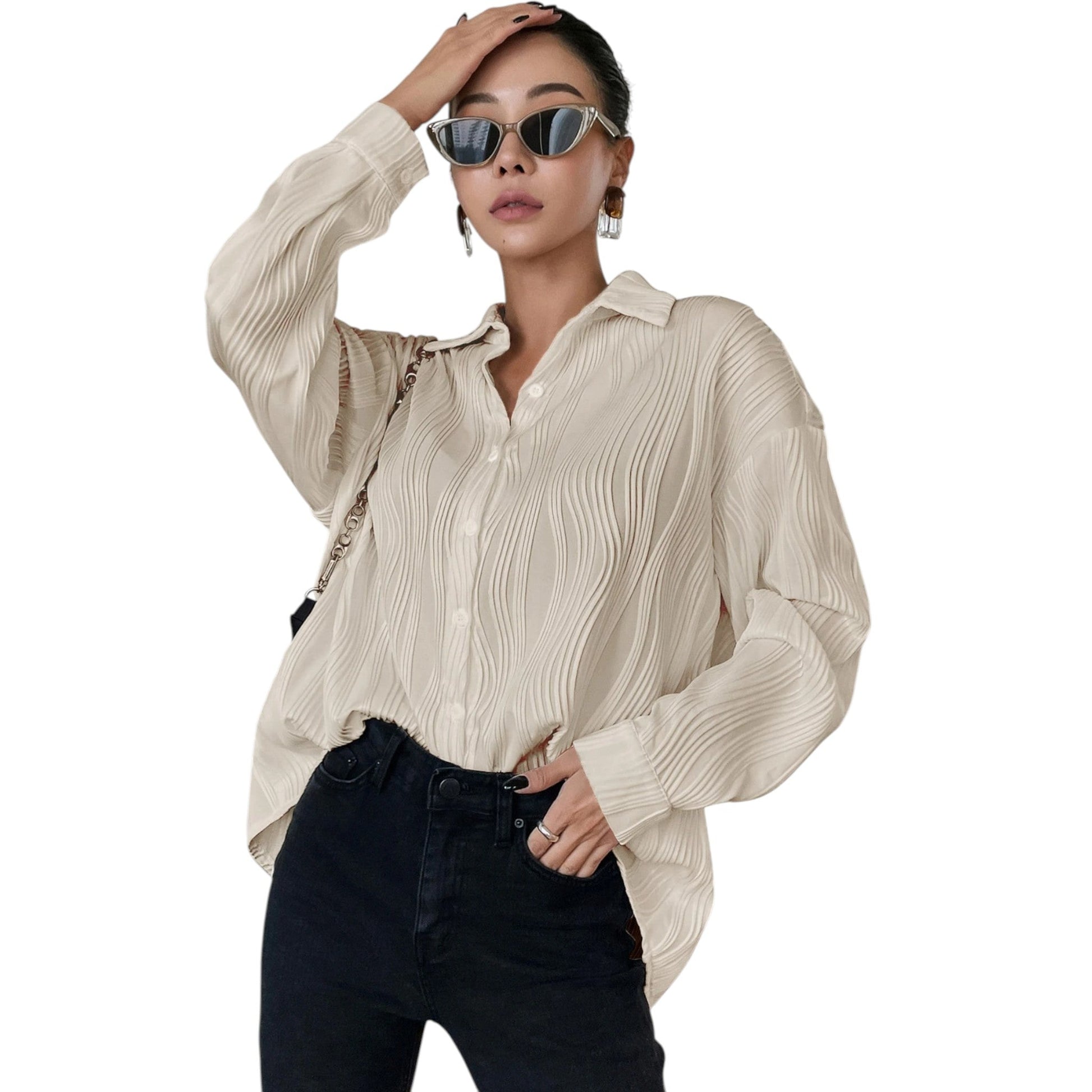 SHE ekrü ráncolt hosszú ujjú ing