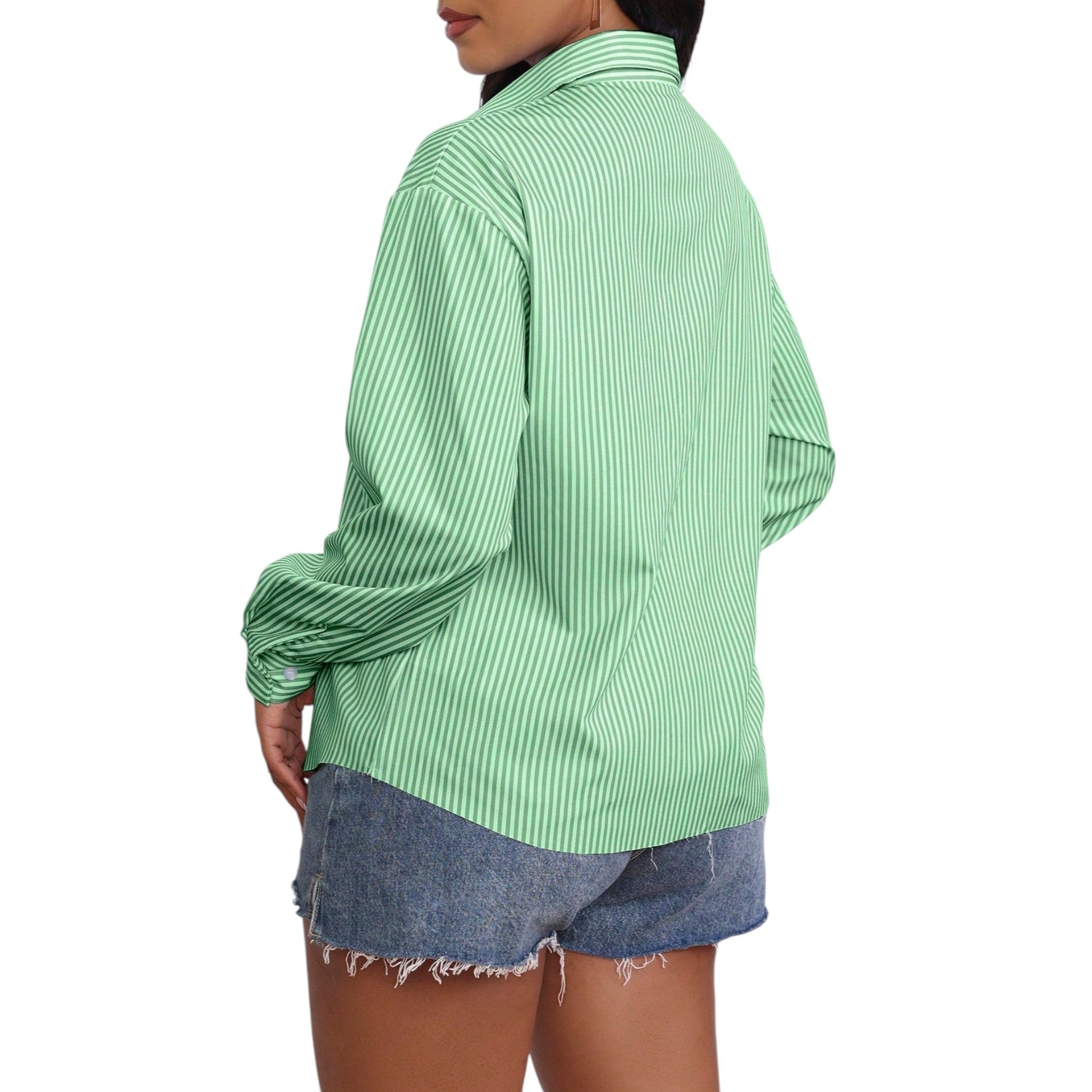 Címke nélküli, zöld, csíkos mintás, galléros, gombos, hosszú ujjú, mellzsebbel.