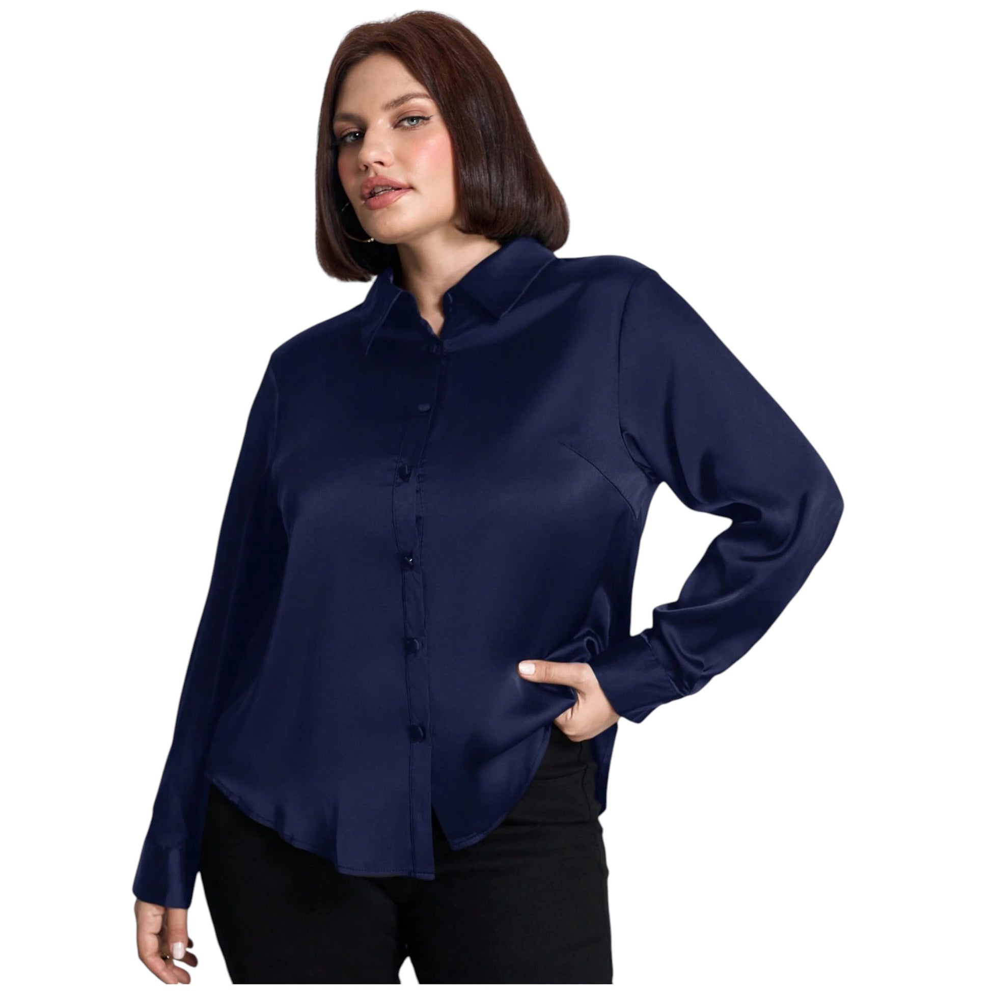 SHE sötétkék szatén ing