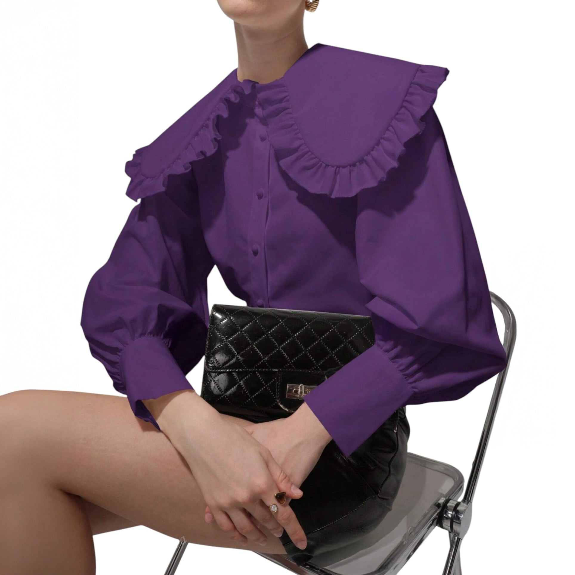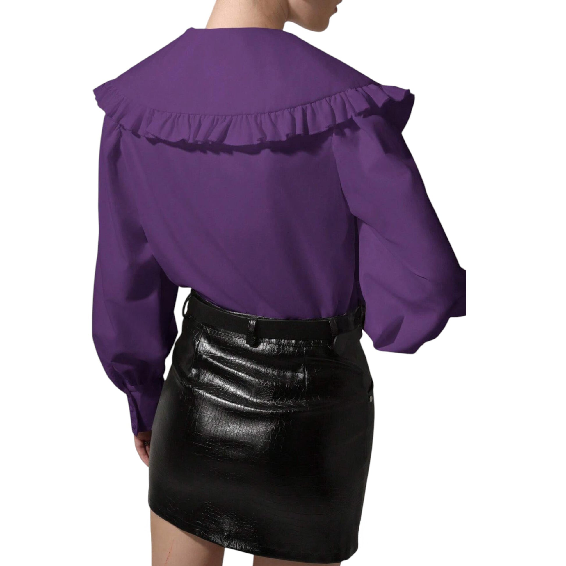 Címke nélküli, lila, fodros, extra széles galléros, gombos, hosszú ujjú ing.