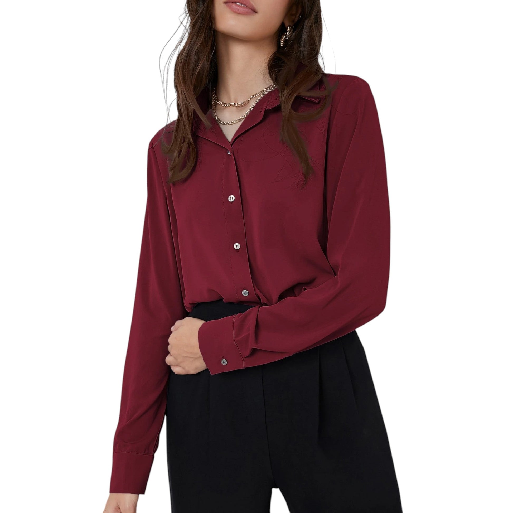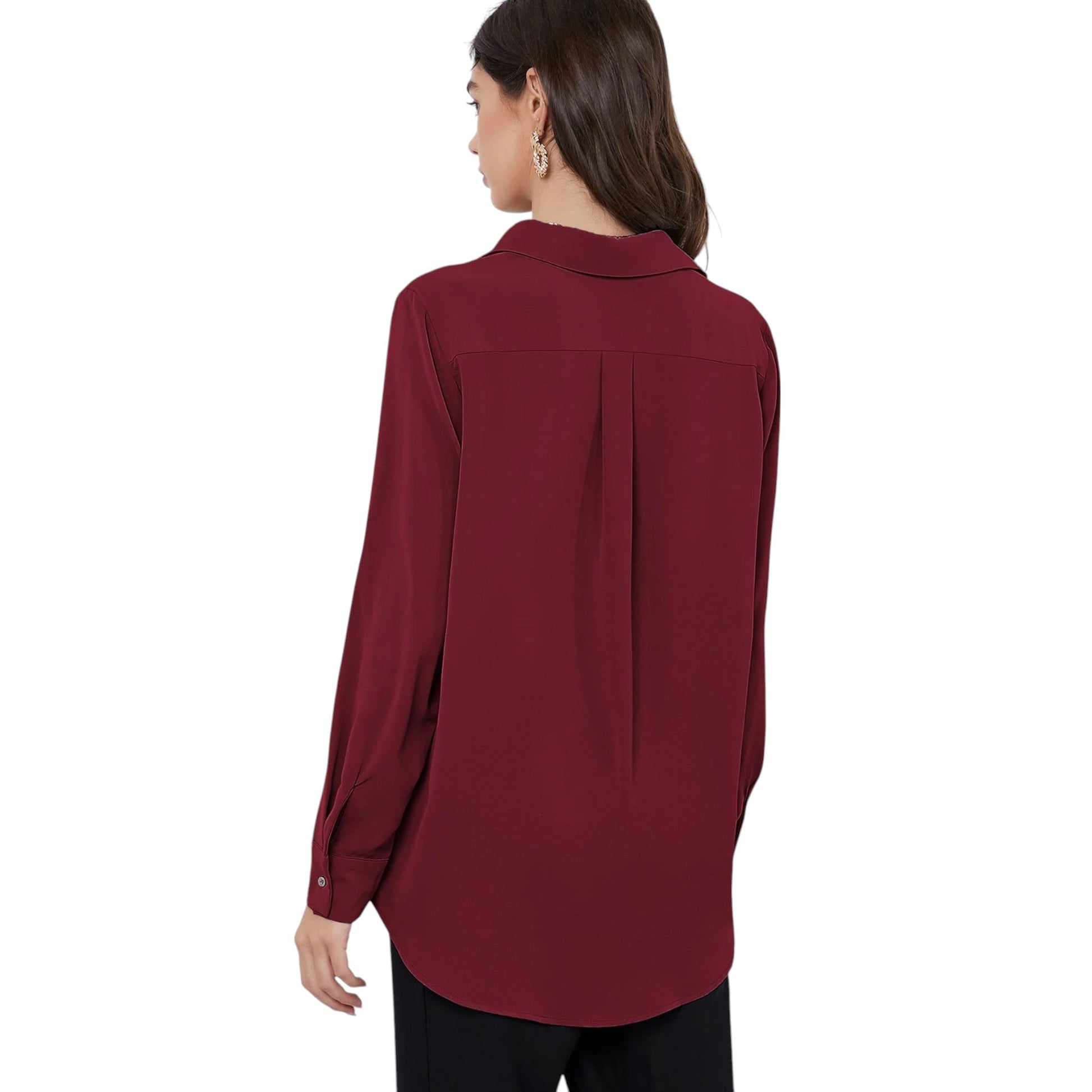 Címke nélküli, bordó színű, hosszú ujjú ing. Klasszikus gallérral és gombos záródással rendelkezik. A mandzsettán szintén gombok találhatóak. Elegáns és sokoldalú darab.