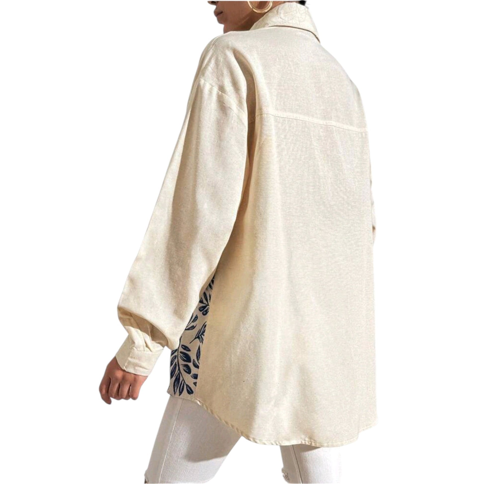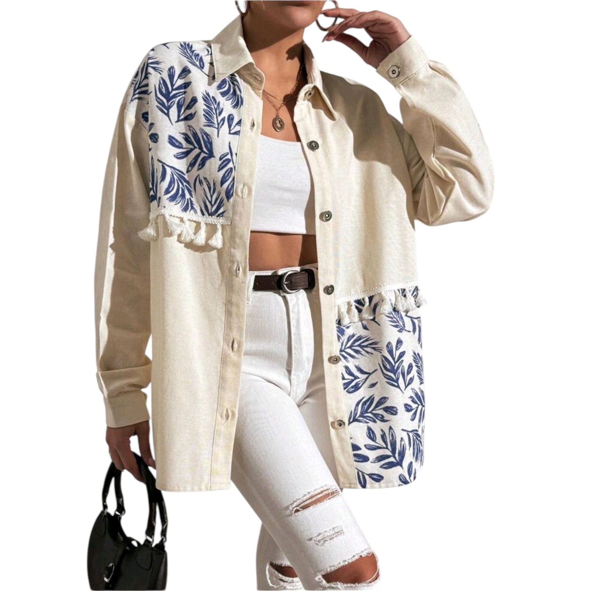 Címke nélküli, bézs, kék mintás, hosszú ujjú, galléros, gombos, mellzsebes.