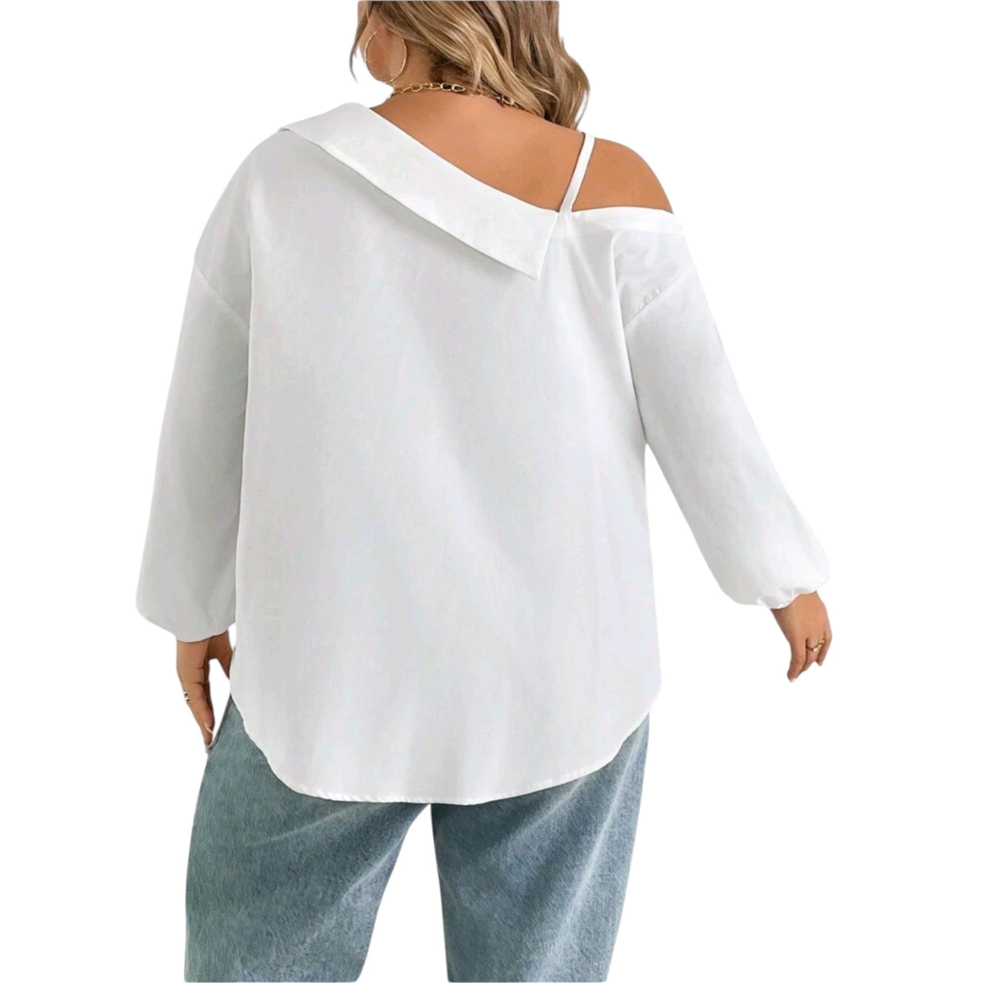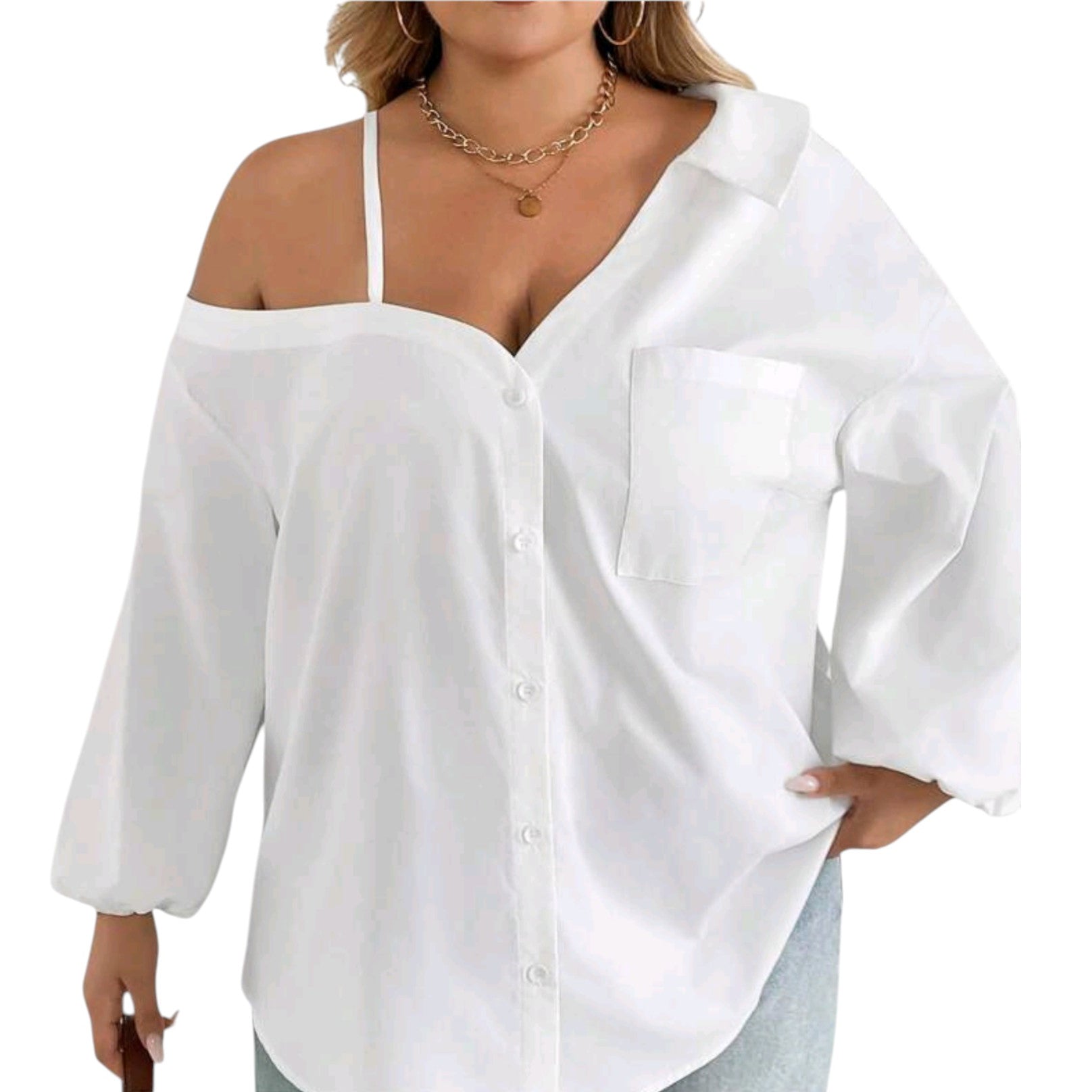 Címke nélküli, fehér, hosszú ujjú, galléros, gombos, félvállas, egy mellzsebbel.