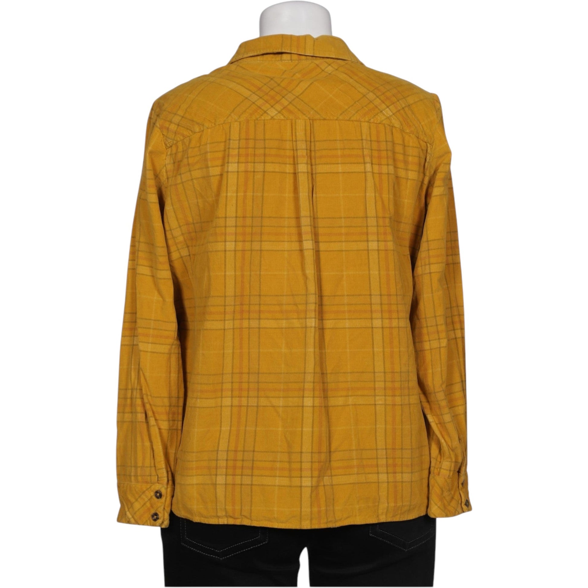 Címke nélküli, mustársárga/sárga, finoman kockás minta, bolyhos (flanel) anyag, hosszú ujjú, galléros, elöl gombolható.