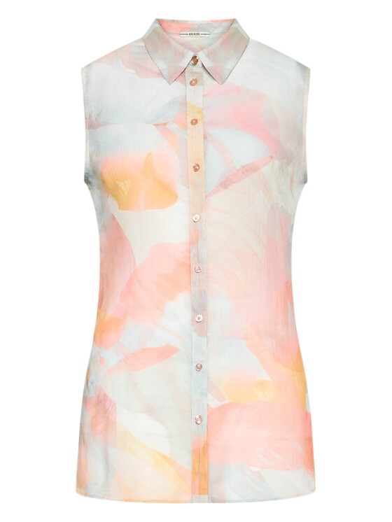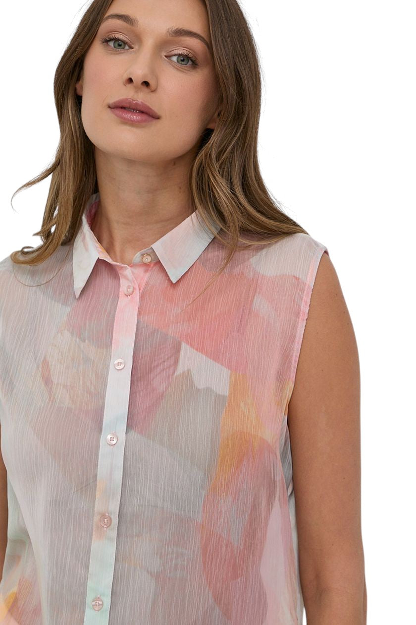 Címke nélküli, többszínű (pasztell), szövet, normál fazon, inggallér, ujjatlan, absztrakt minta, gombos.
