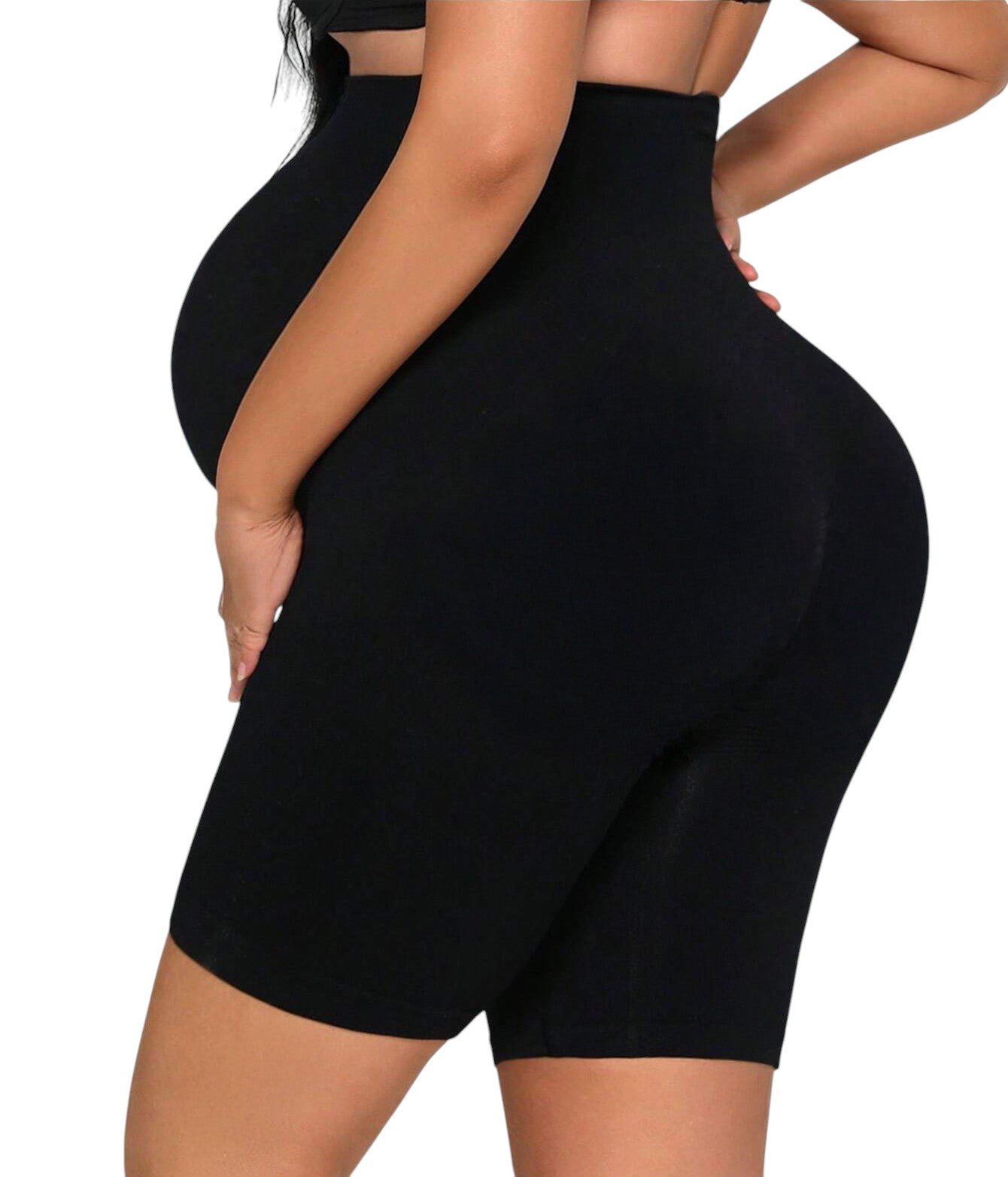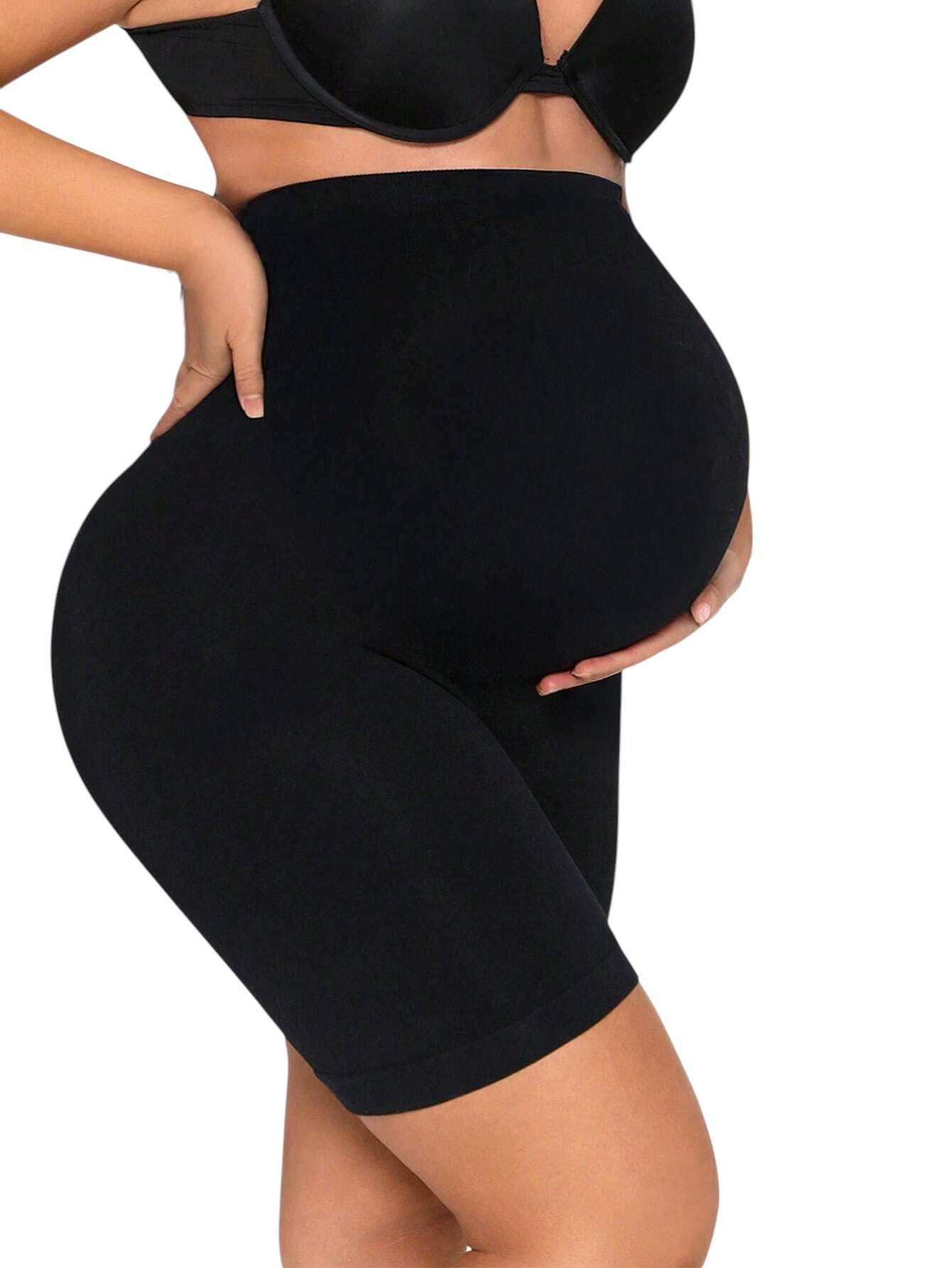 Címke nélküli, fekete, magas derekú, hasat tartó terhes rövidnadrág