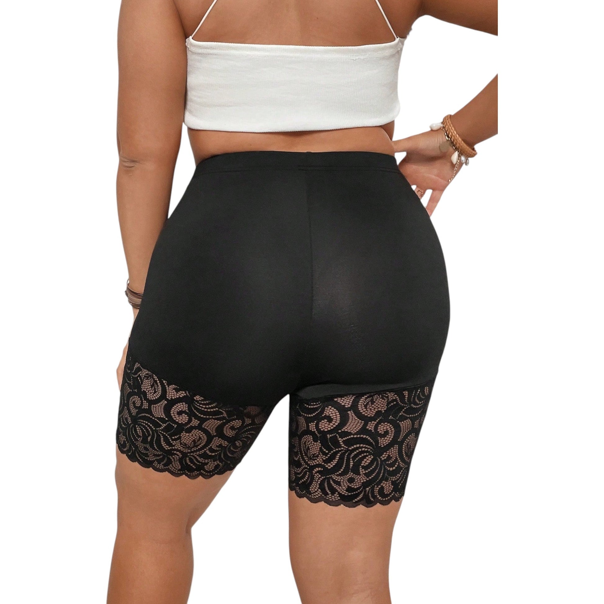 Címke nélküli, fekete, csipkés díszítésű aljjal, magas derekú biciklis rövidnadrág.