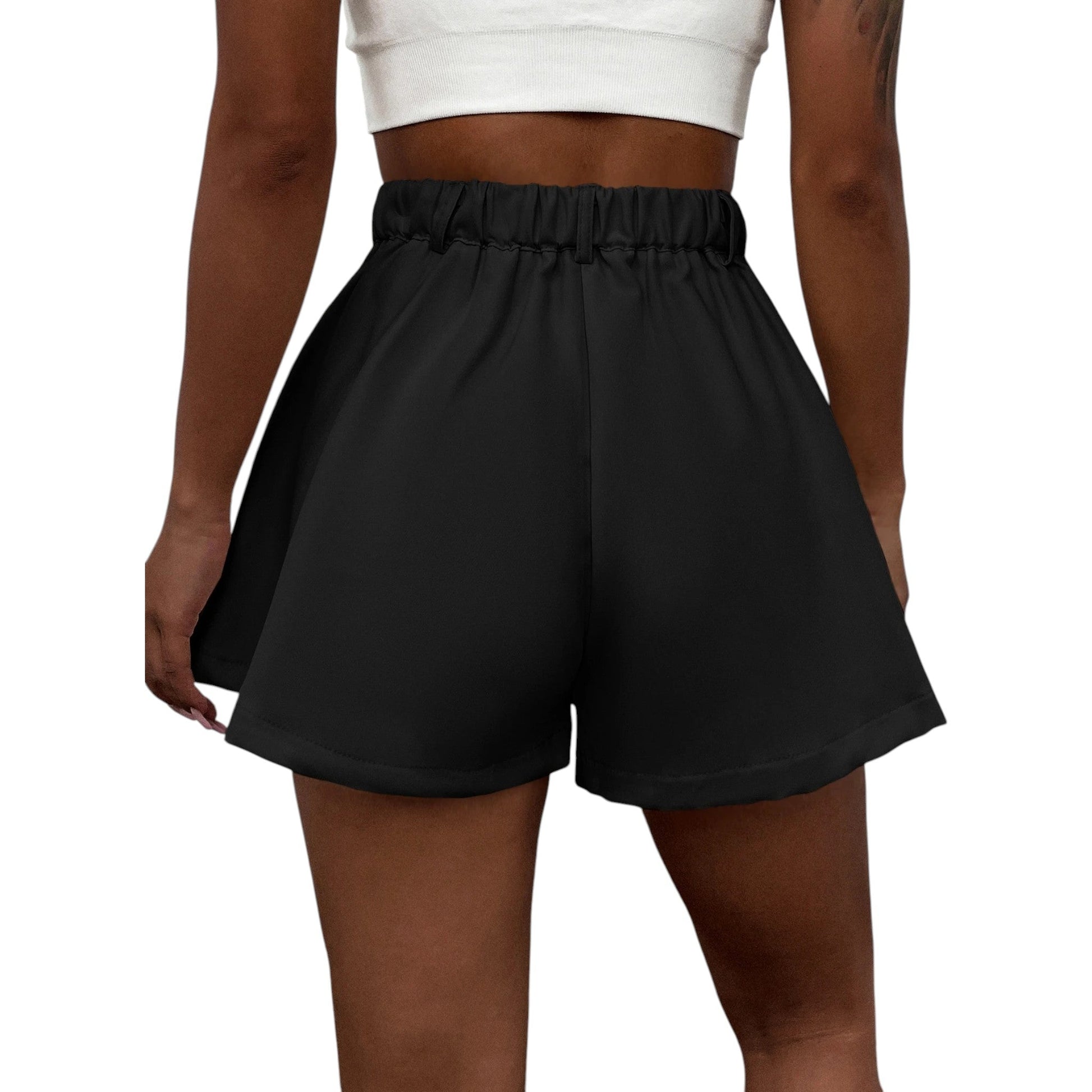 Címke nélküli, fekete színű, magas derekú, A-vonalú rövidnadrág. A nadrág gombbal és zsebekkel rendelkezik. Stílusos és kényelmes viselet a nyári napokra.