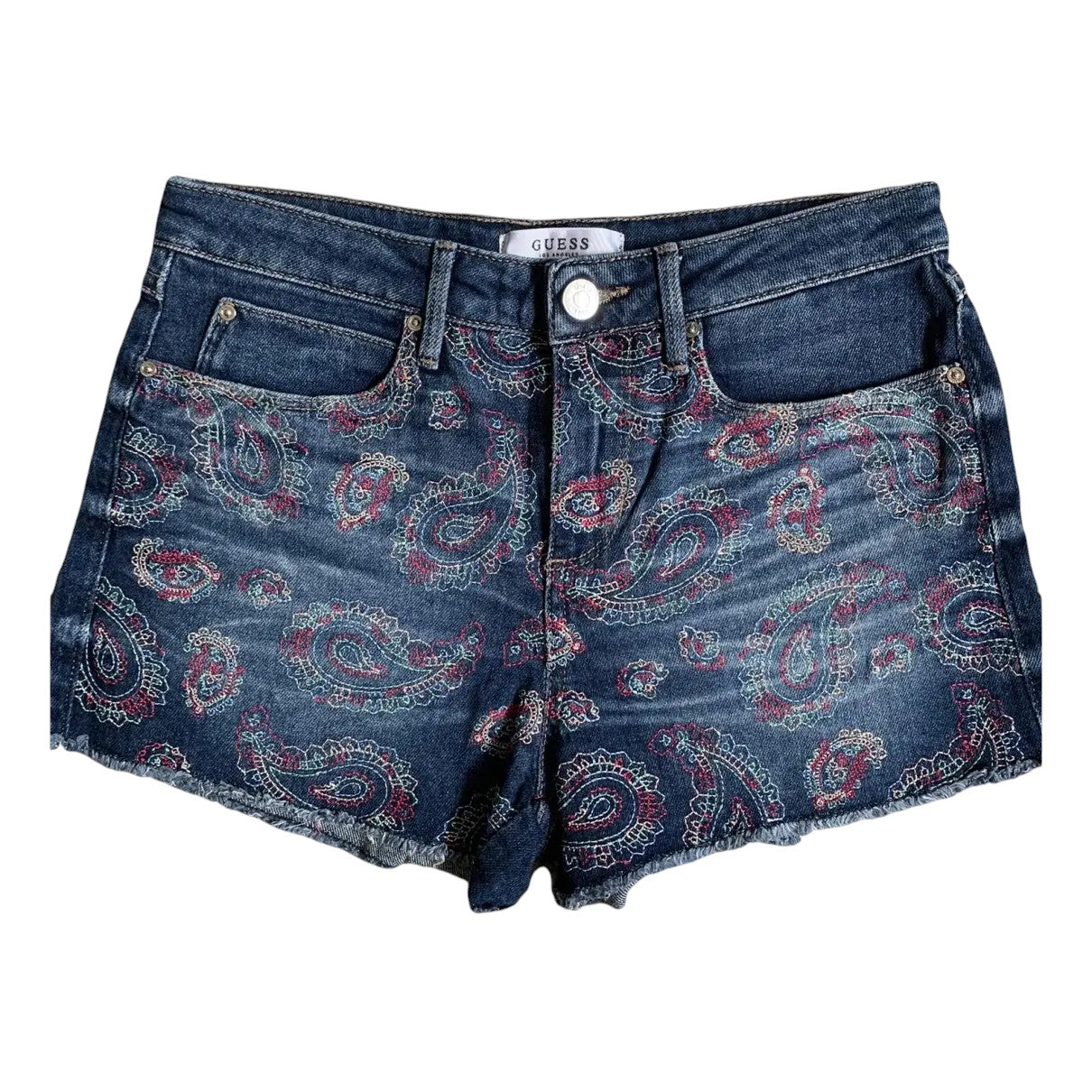 Címke nélküli, sötétkék (koptatott), farmer, normál fazon, paisley hímzés, kopott szegély, 5-zsebes.