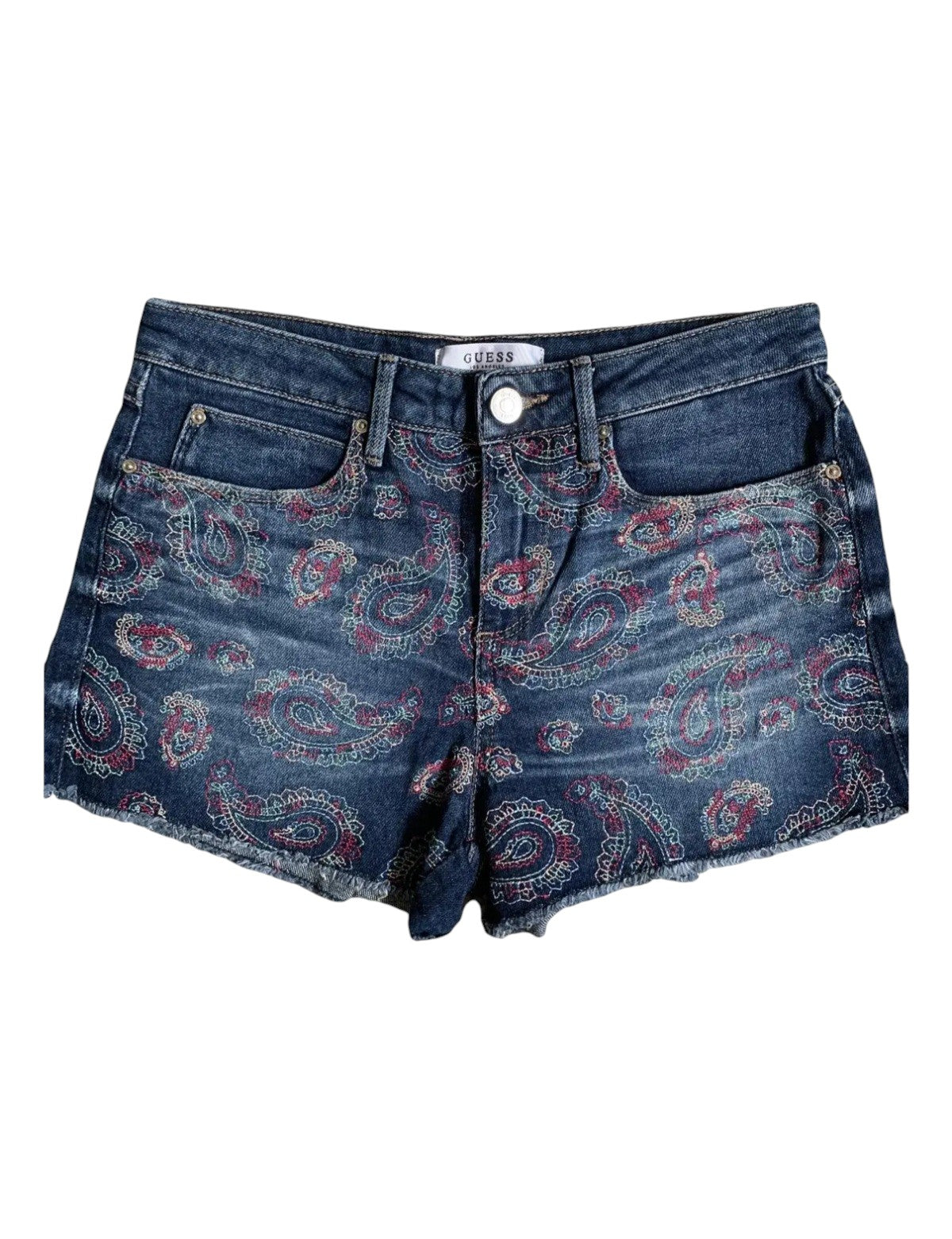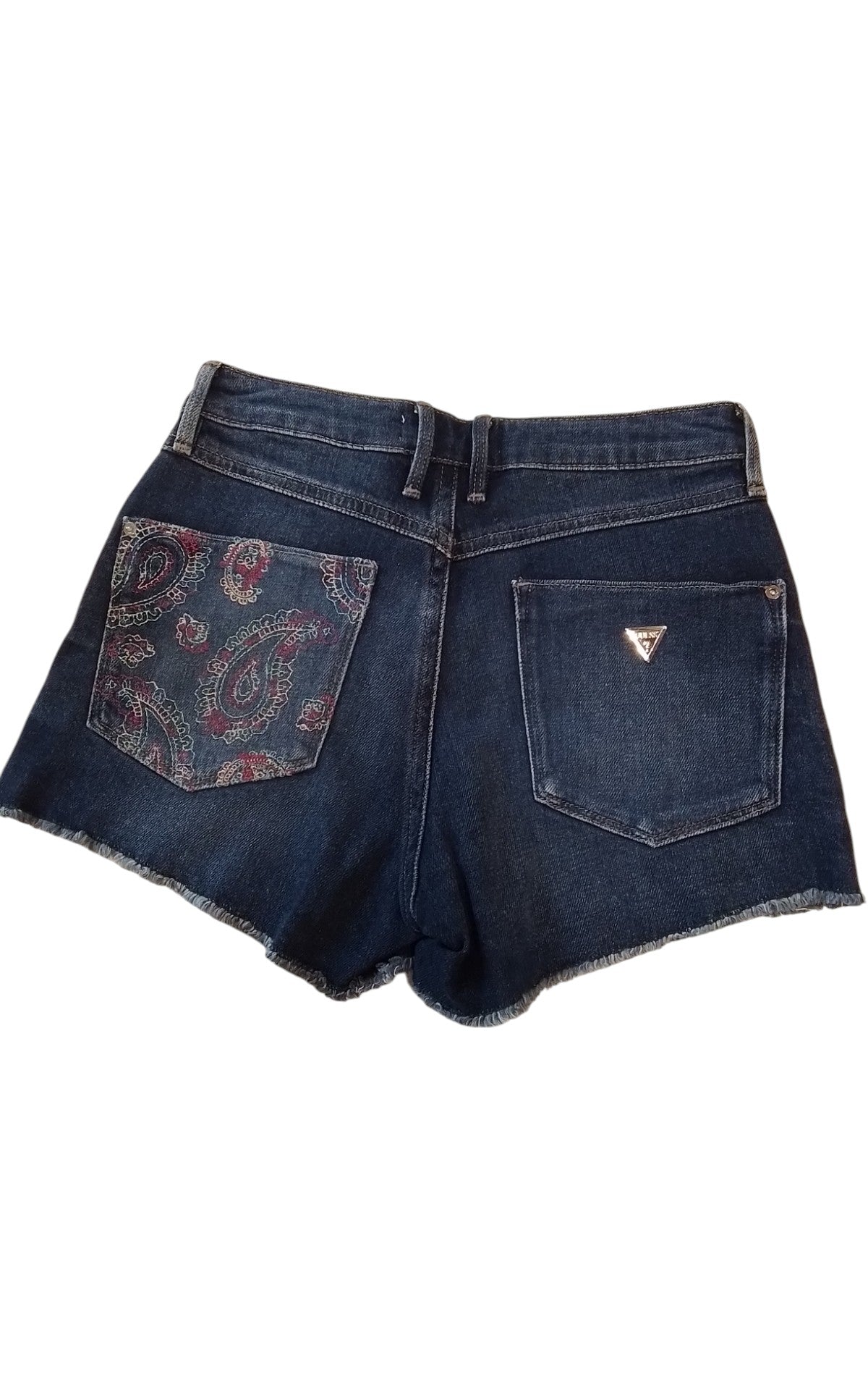 Címke nélküli, sötétkék (koptatott), farmer, normál fazon, paisley hímzés, kopott szegély, 5-zsebes.