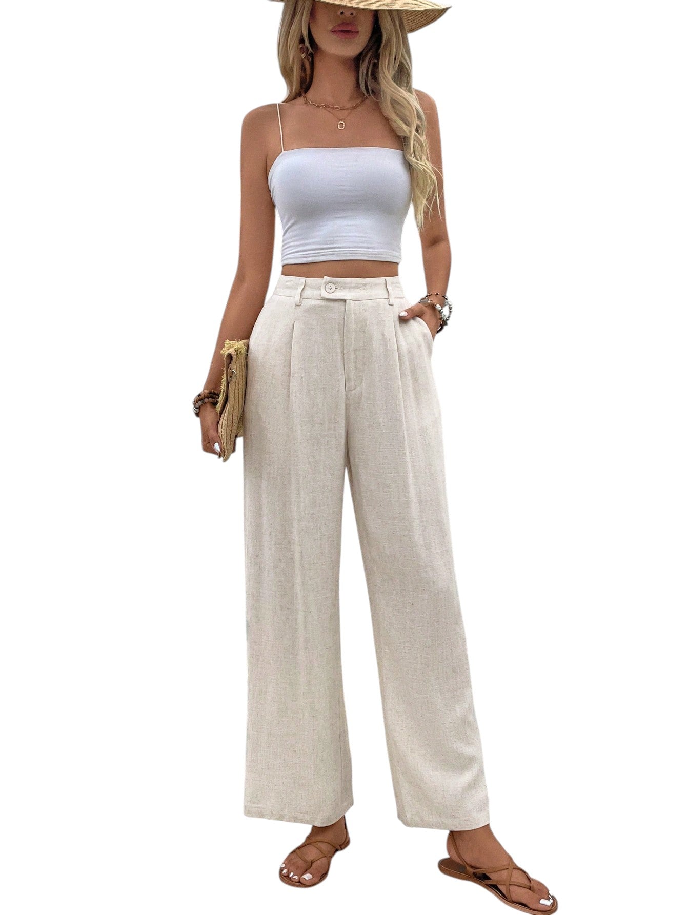 Címke nélküli, törtfehér, magas derekú, bő szárú, slicces nadrág