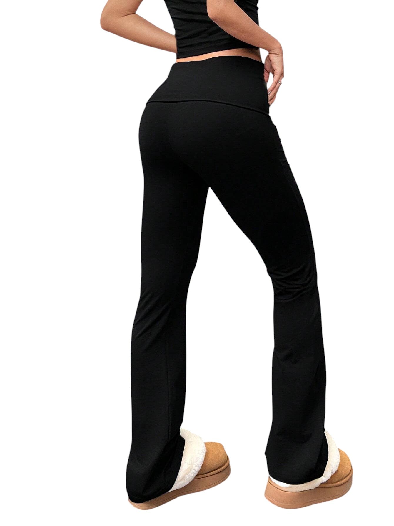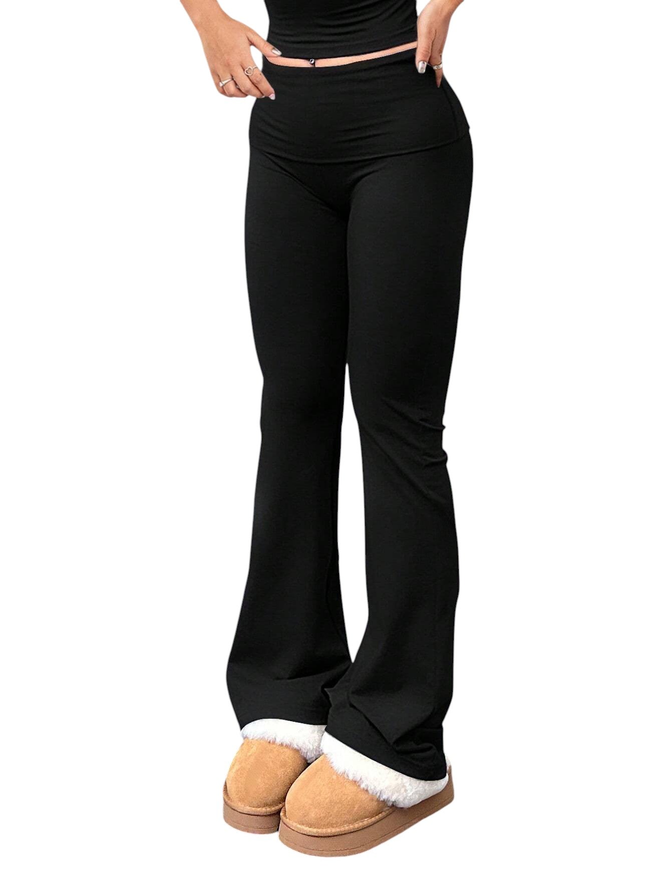 Címke nélküli, fekete, magas derekú, trapéz szárú nadrág