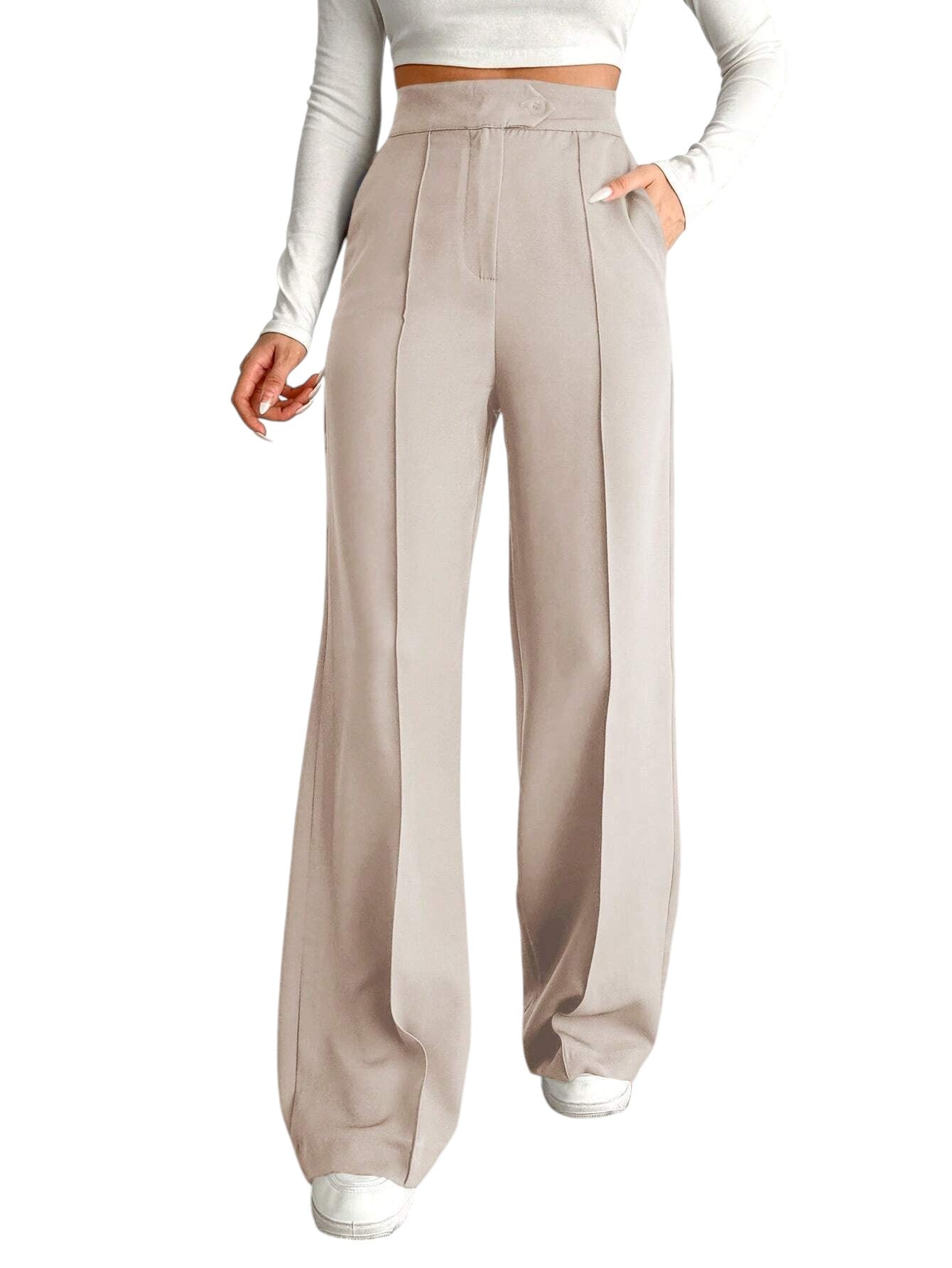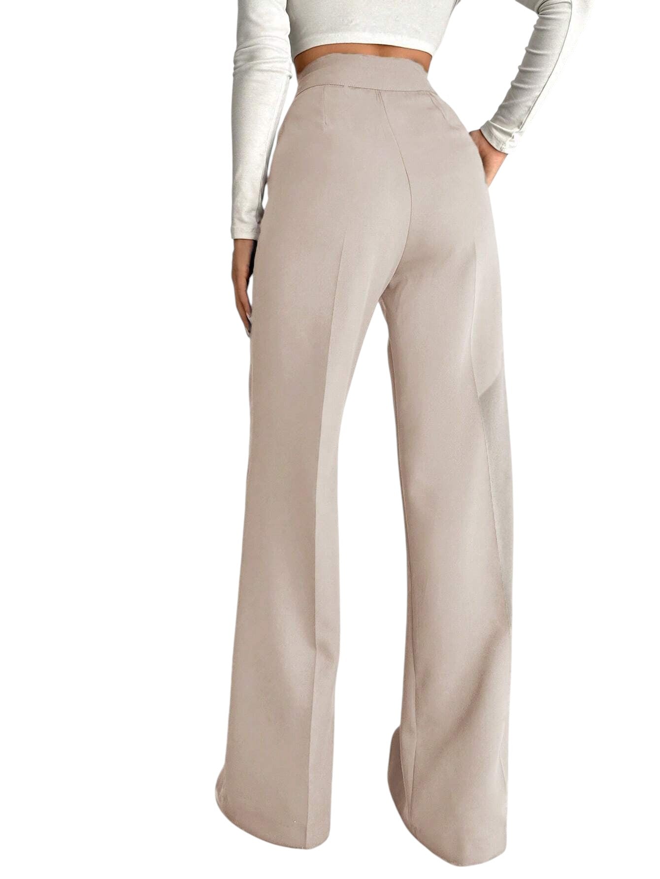 Címke nélküli, bézs, magas derekú, bő szárú, slicces nadrág