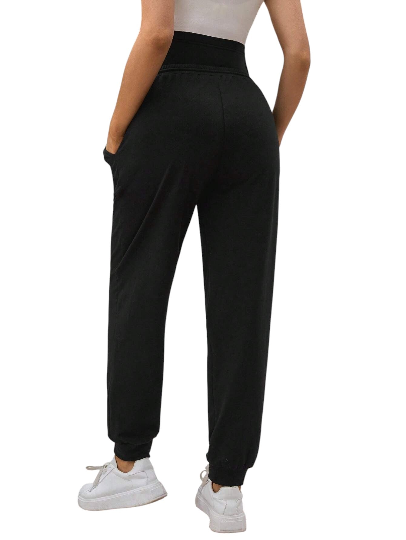 Címke nélküli, fekete, magas derekú, húzózsinóros kismama szabadidő nadrág