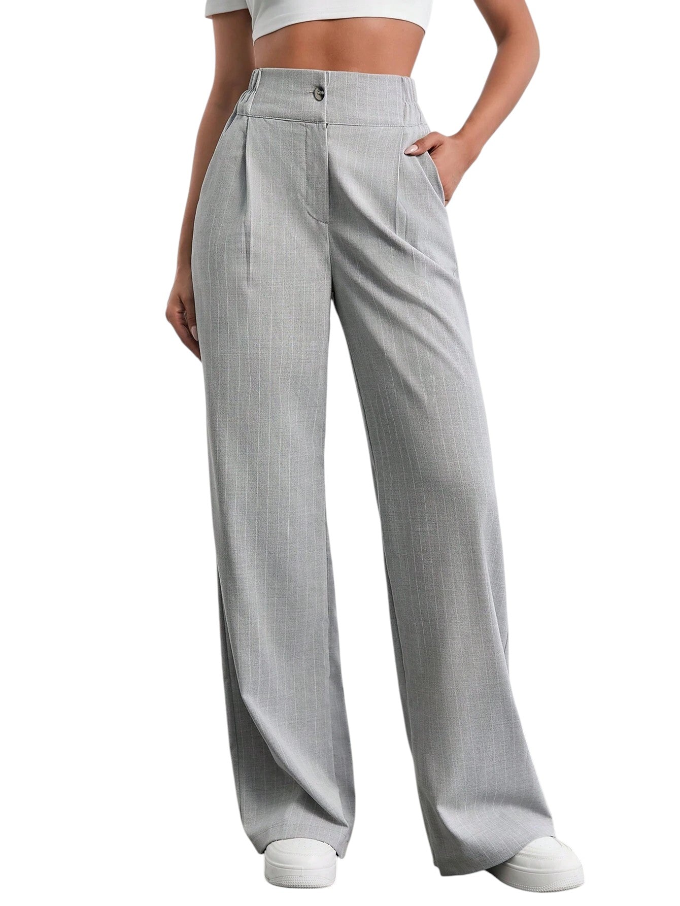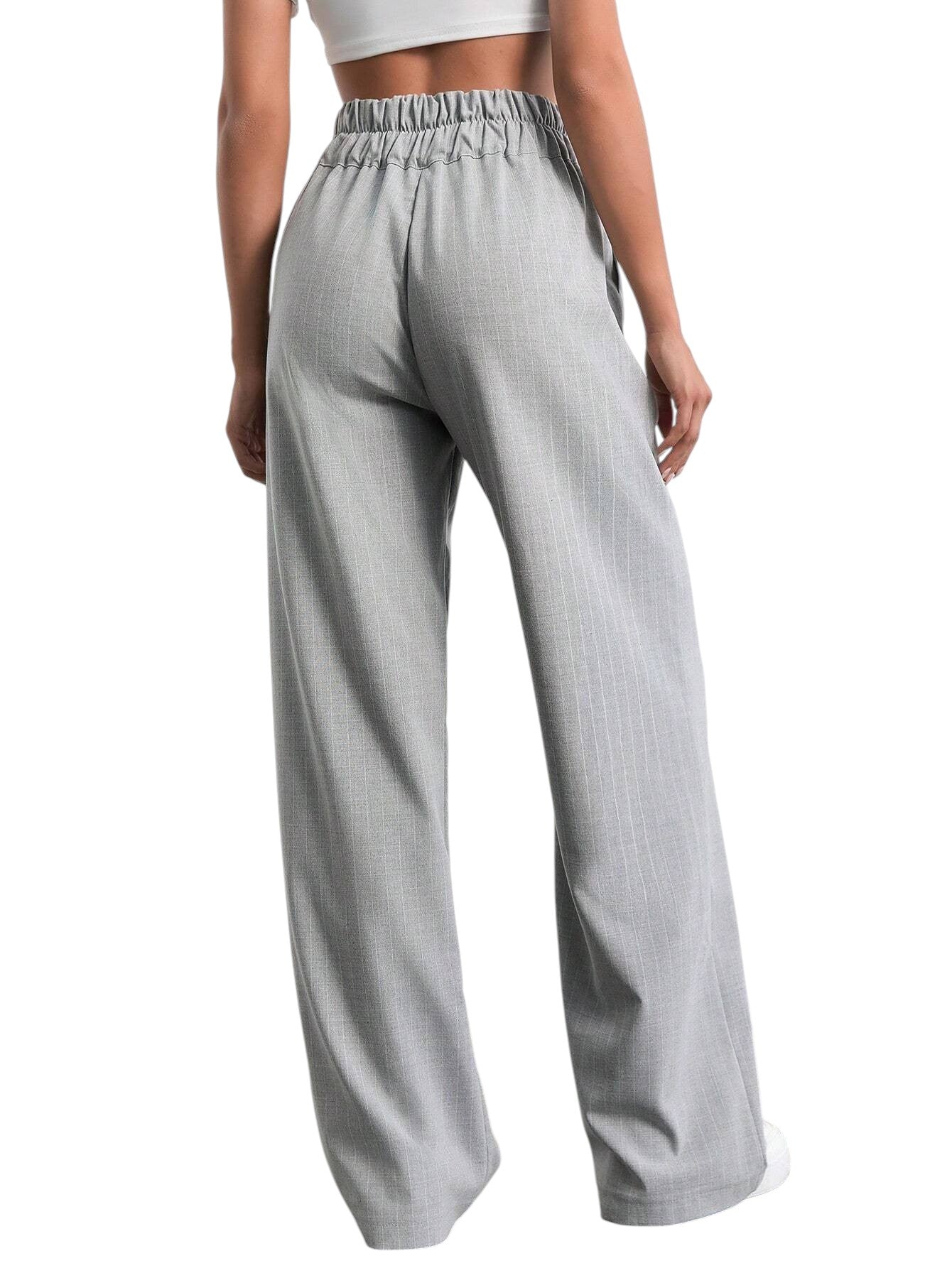 Címke nélküli, szürke, magas derekú, ráncolt elejű, bő szárú nadrág