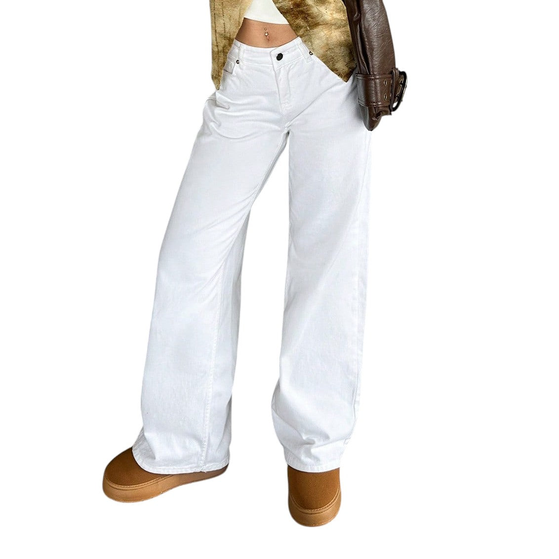 Címke nélküli, fehér, magas derekú, bő szárú farmer