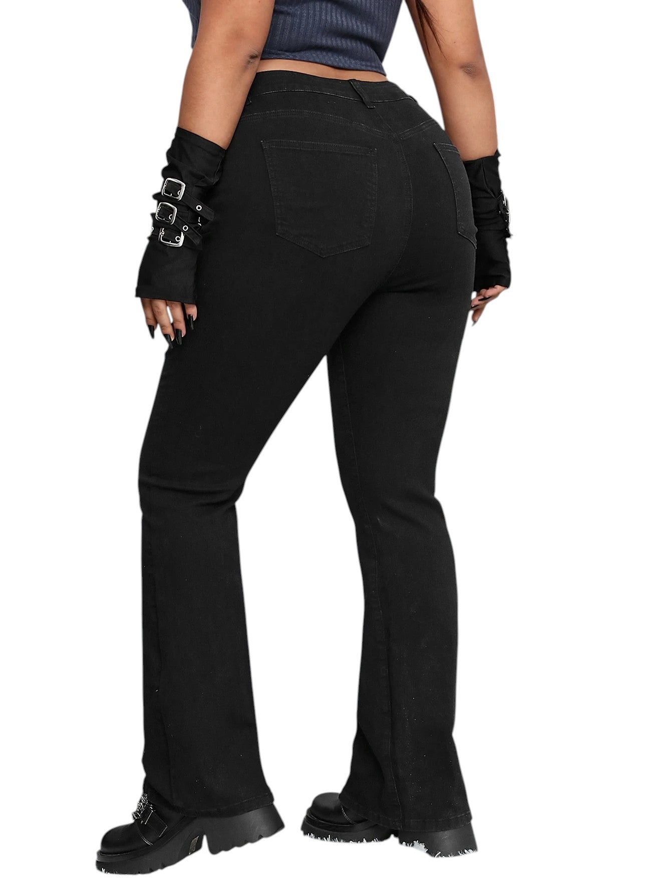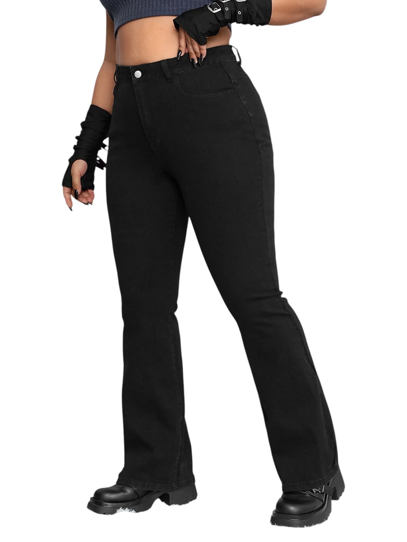 Címke nélküli, fekete, magas derekú, trapéz szárú farmer