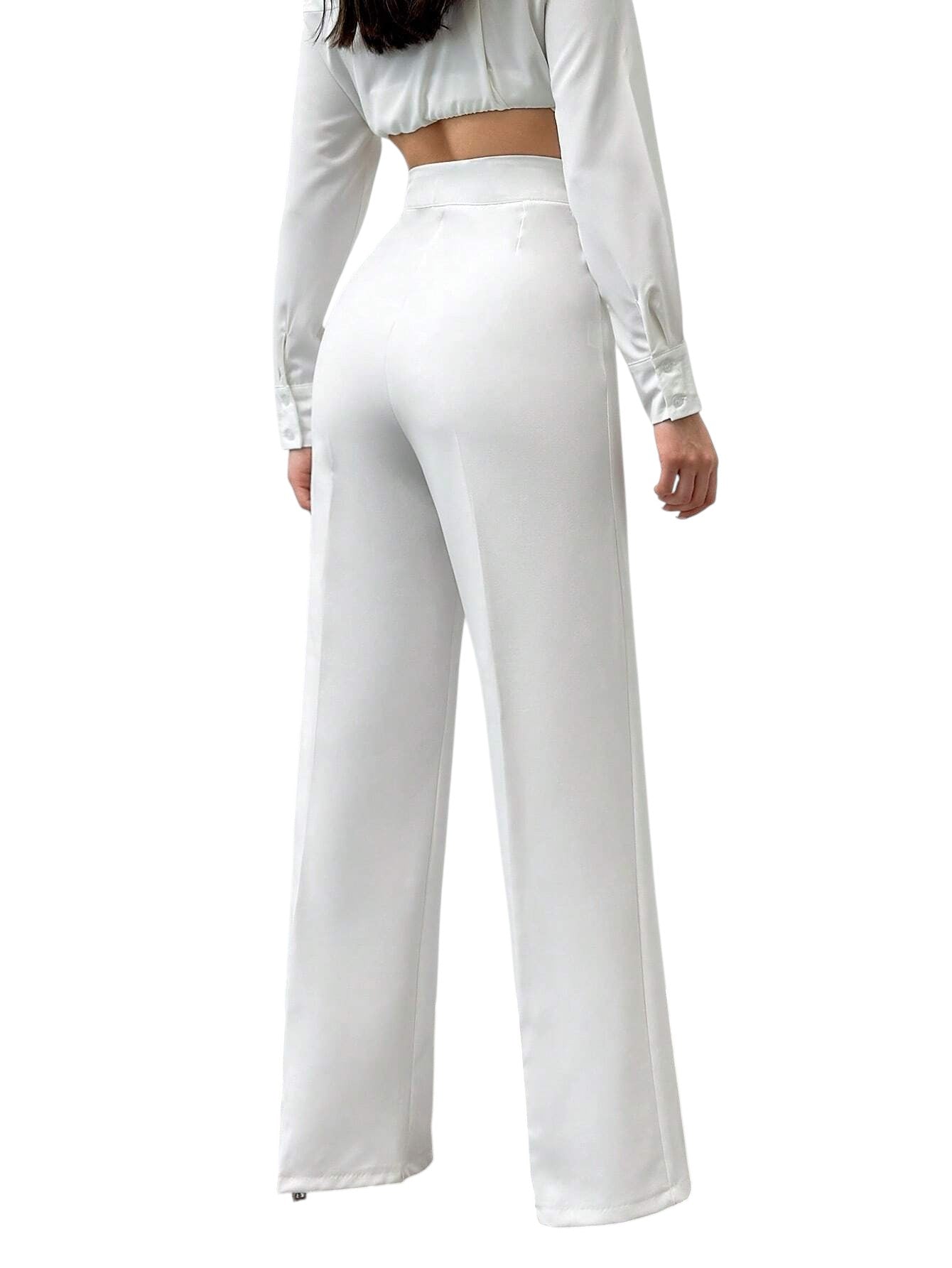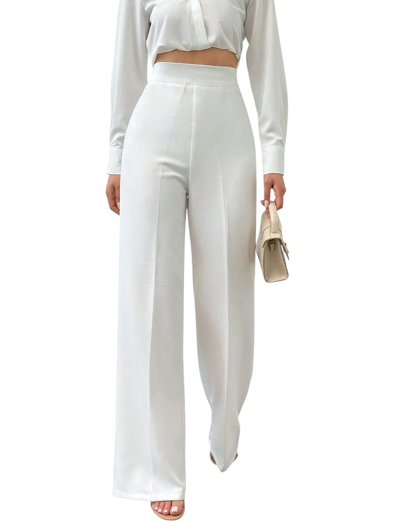 Címke nélküli, fehér, magas derekú, bő szárú nadrág
