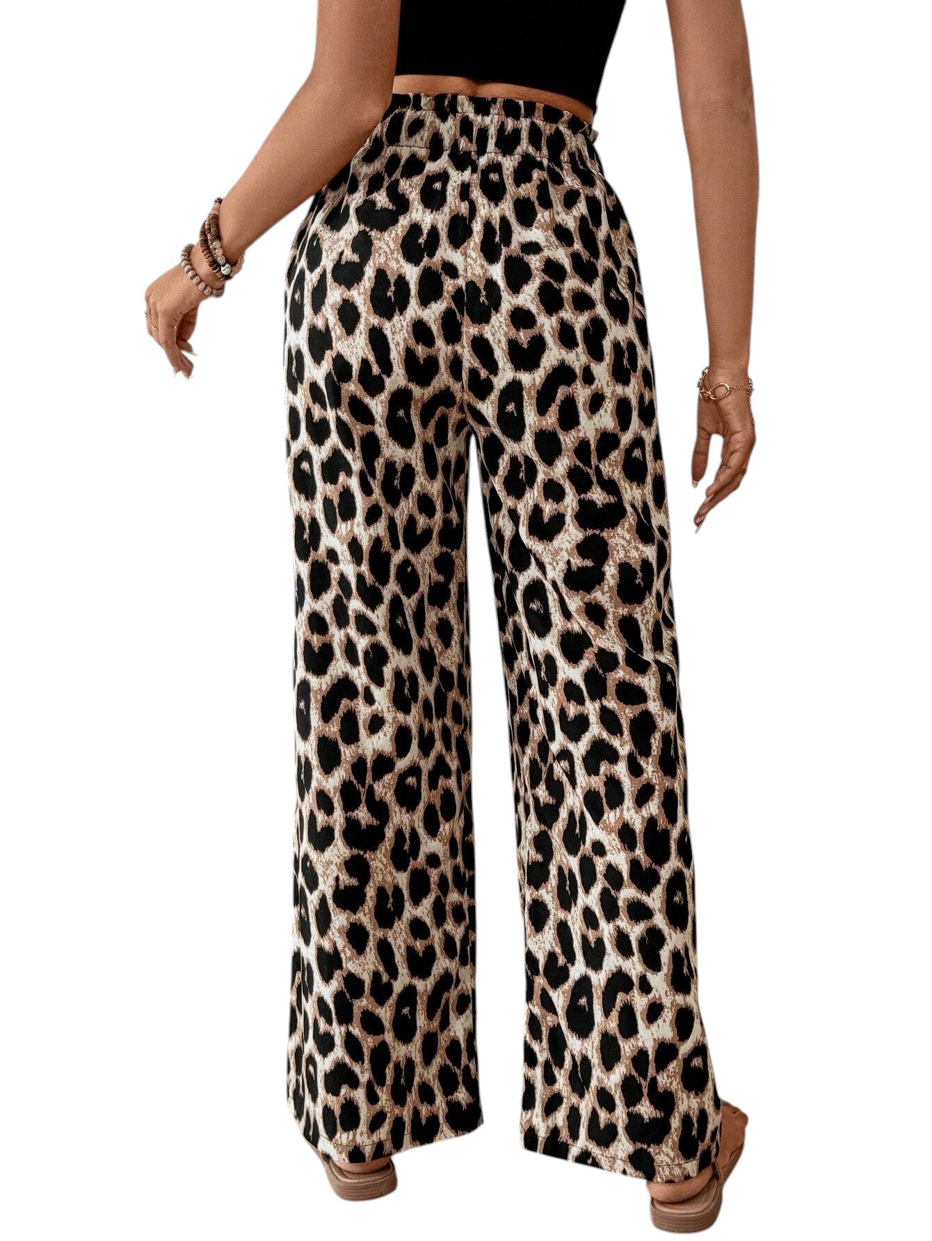SHE leopárdmintás húzózsinóros bő szárú nadrág