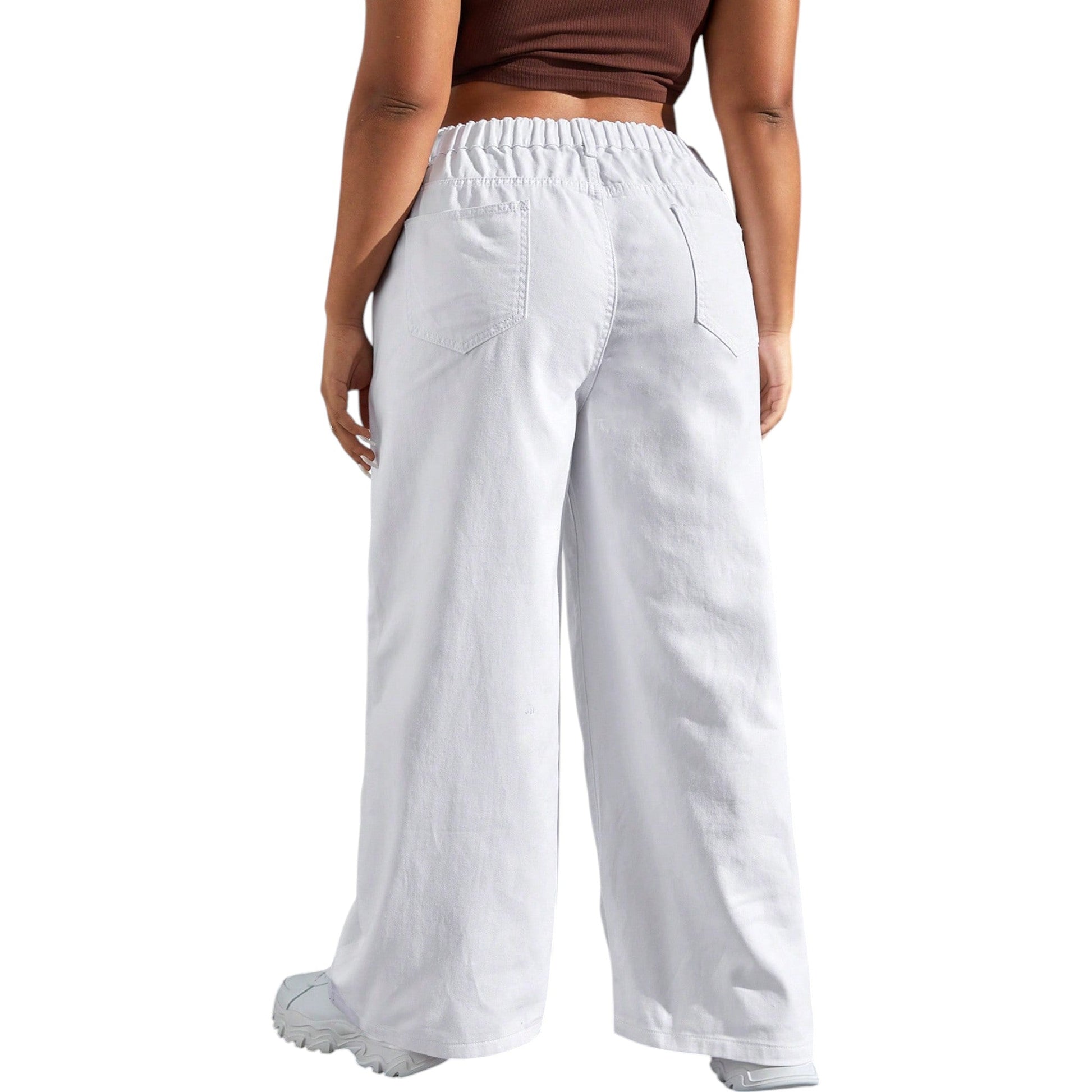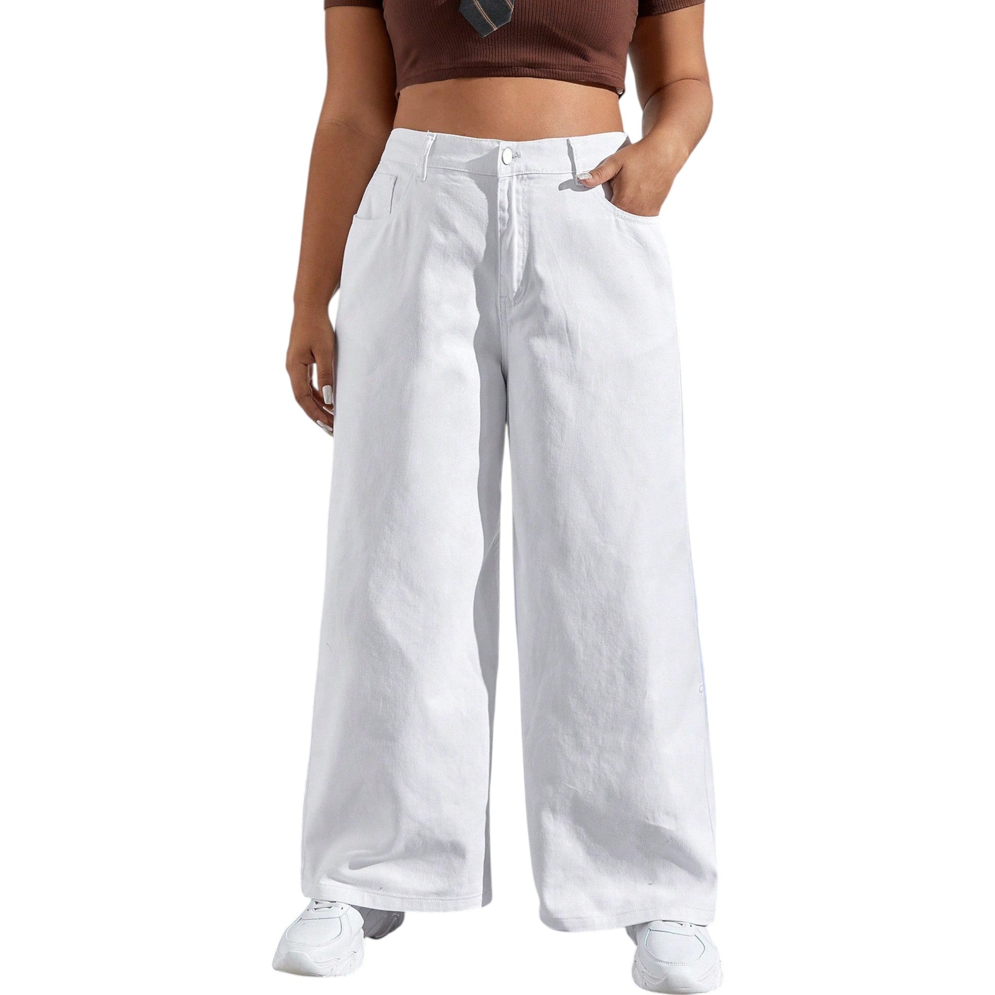 Címke nélküli, fehér, magas derekú, széles szárú farmer nadrág.