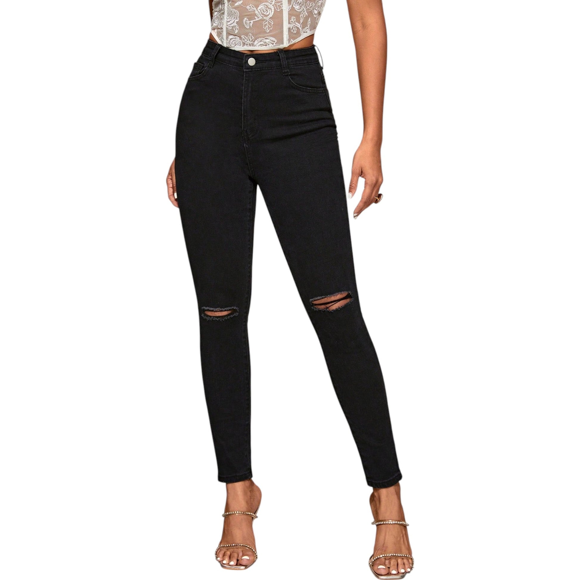 SHE fekete szaggatott skinny farmer