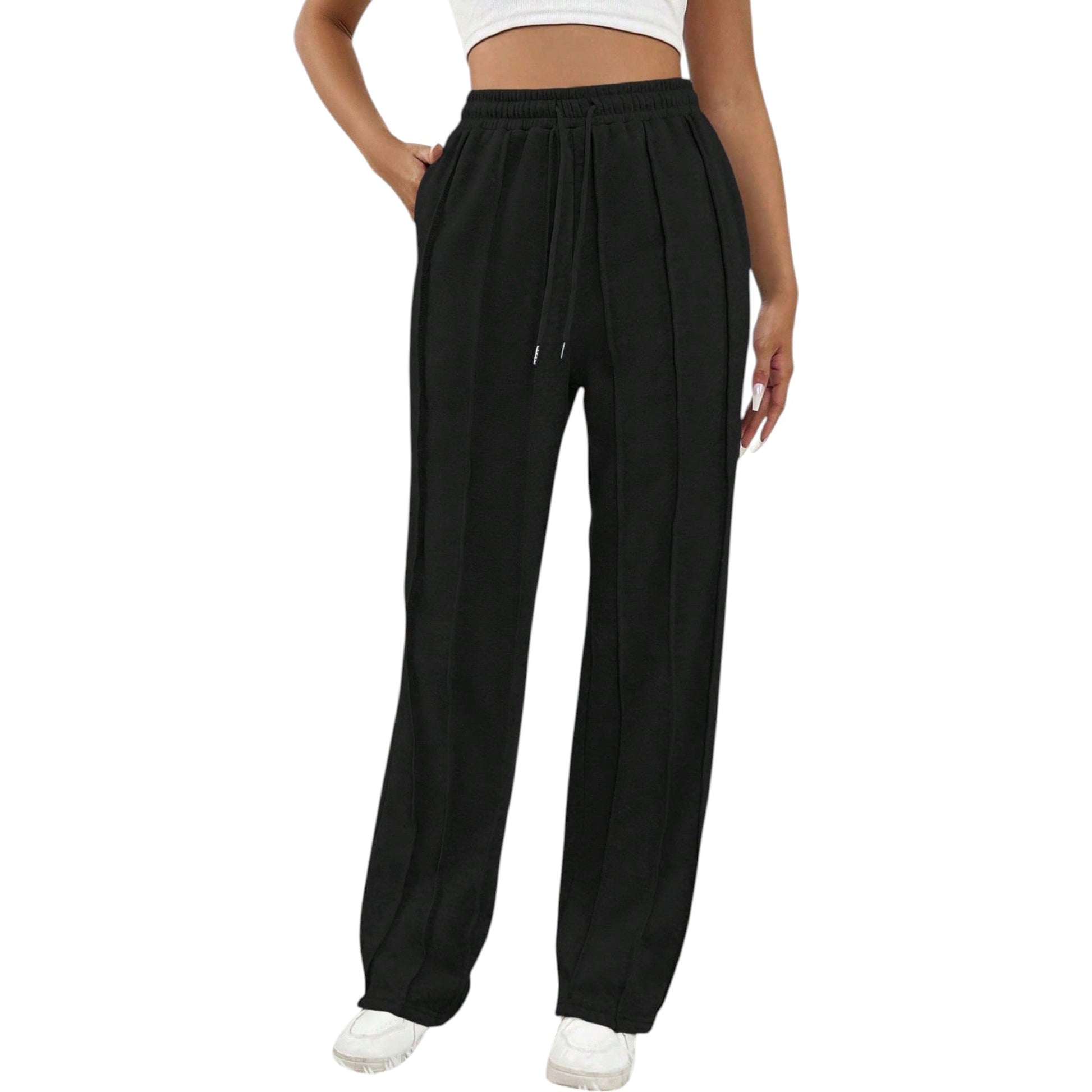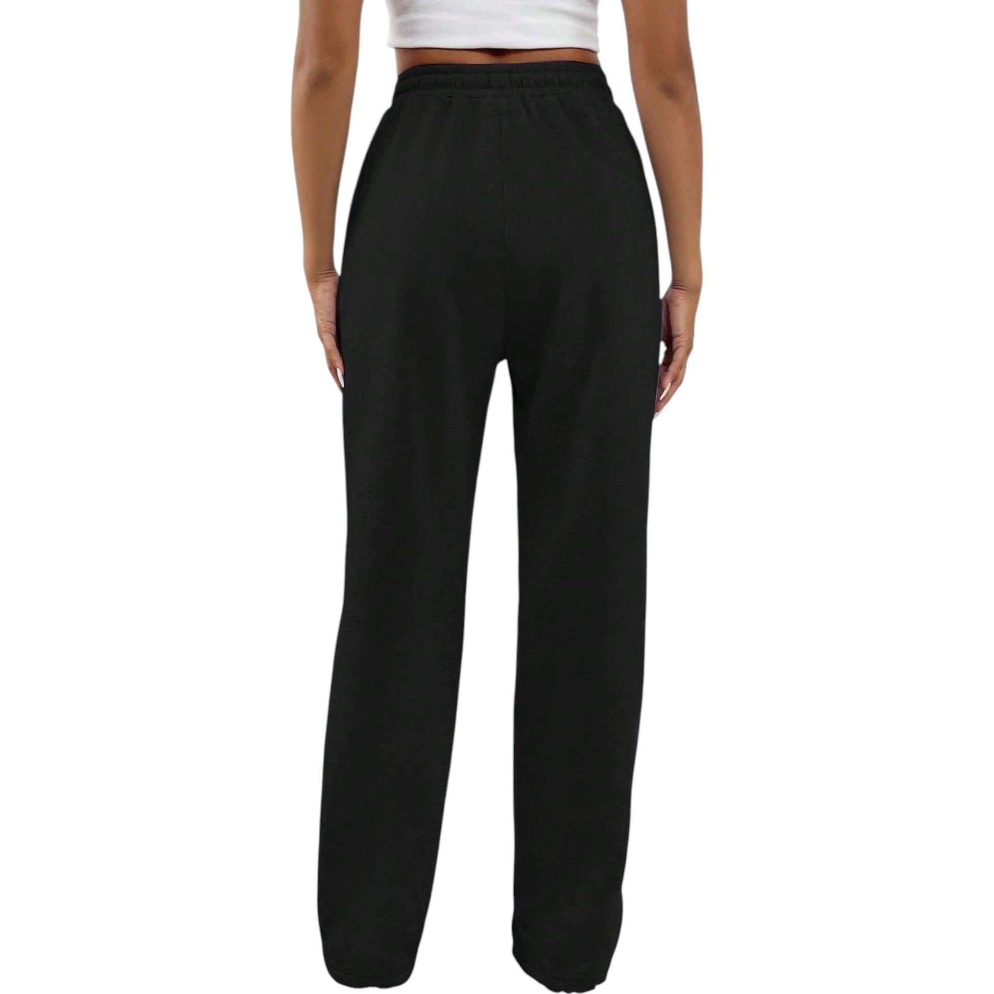Címke nélküli, fekete, magas derekú, húzózsinóros, bő szabású melegítőnadrág.