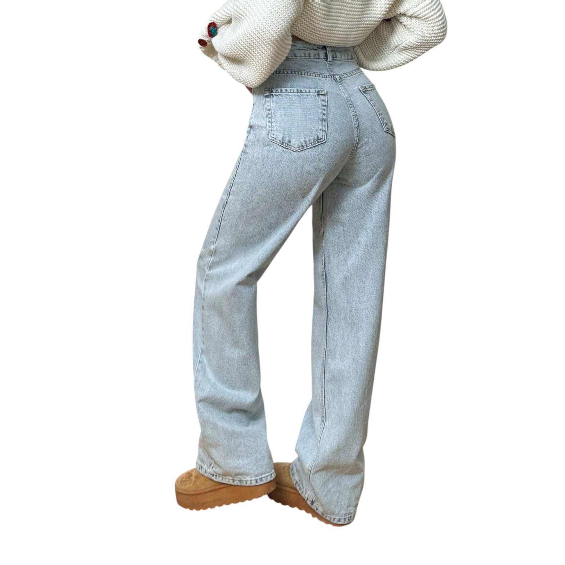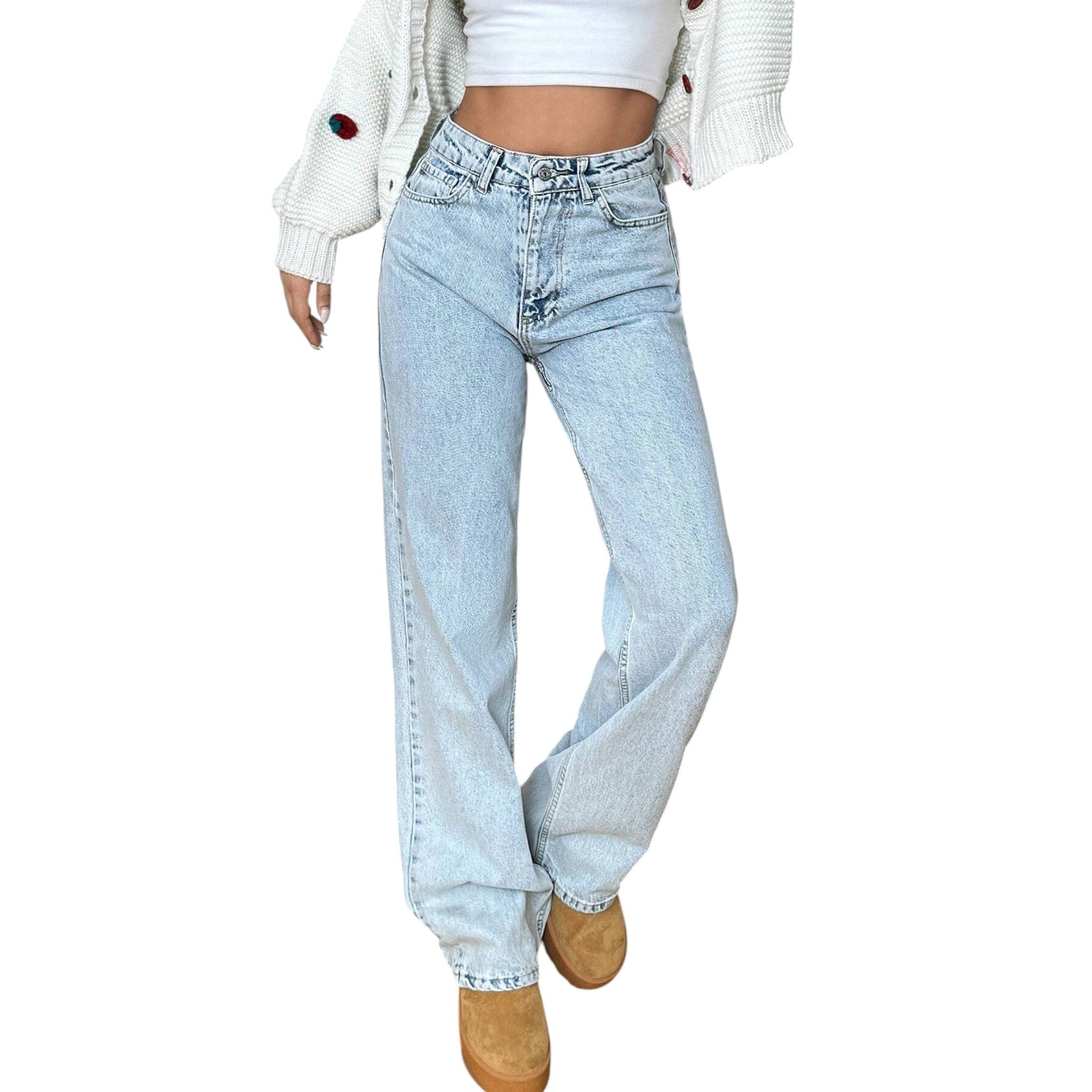 Címke nélküli, világoskék, baggy, egyenes szárú farmer nadrág.