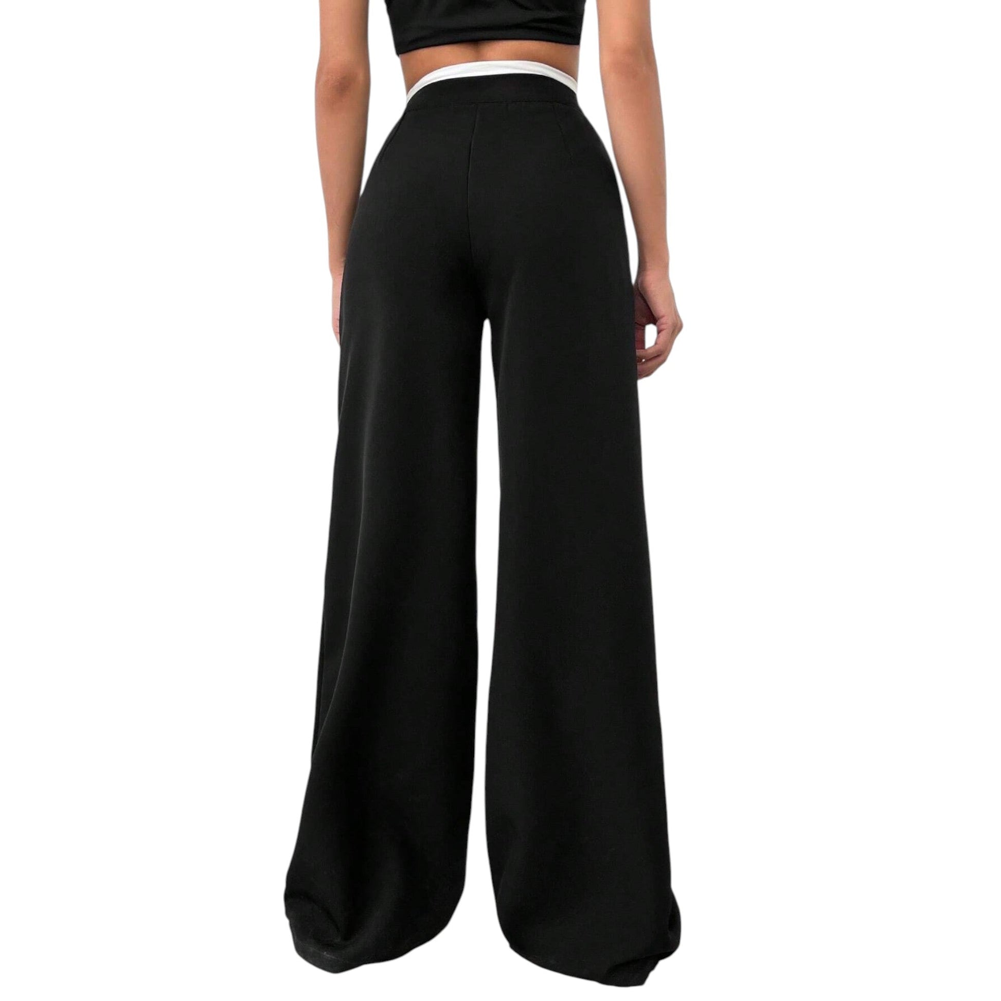 Címke nélküli, fekete, bő szárú nadrág fehér húzózsinórral a derékrészen.